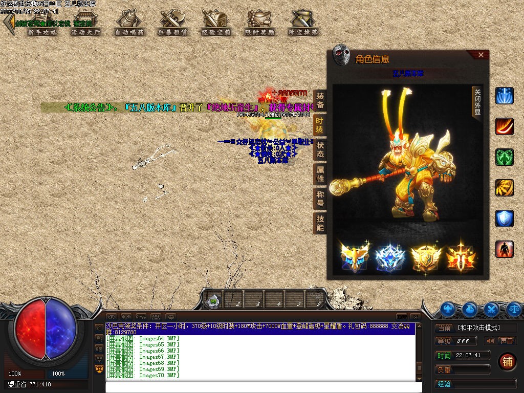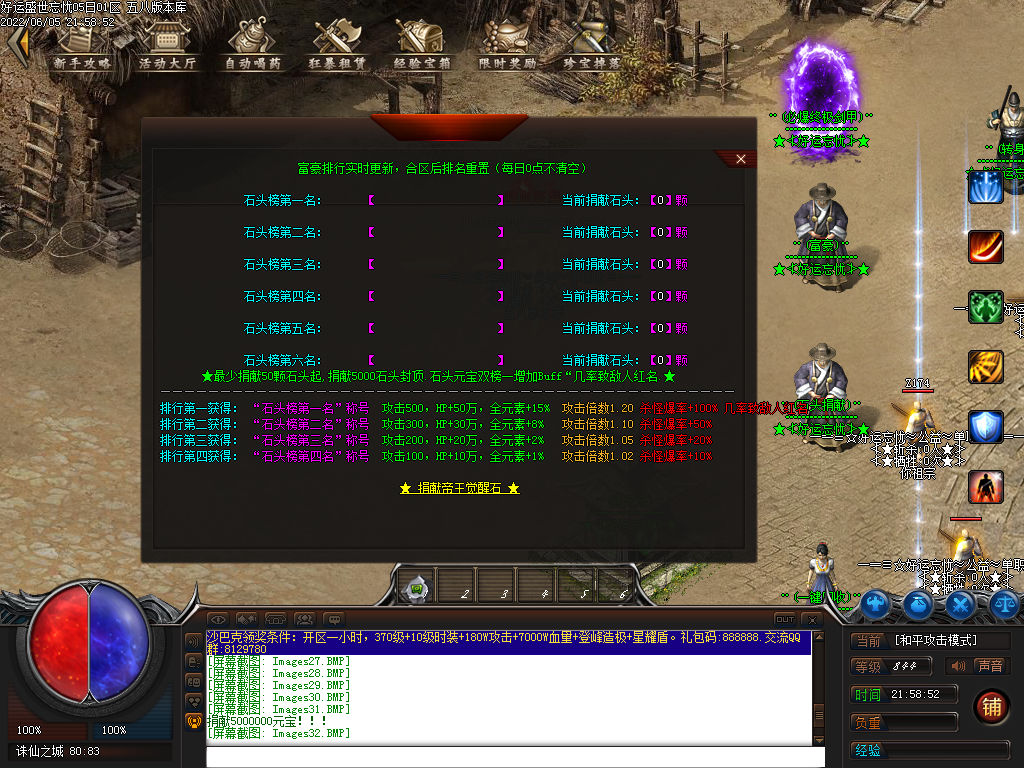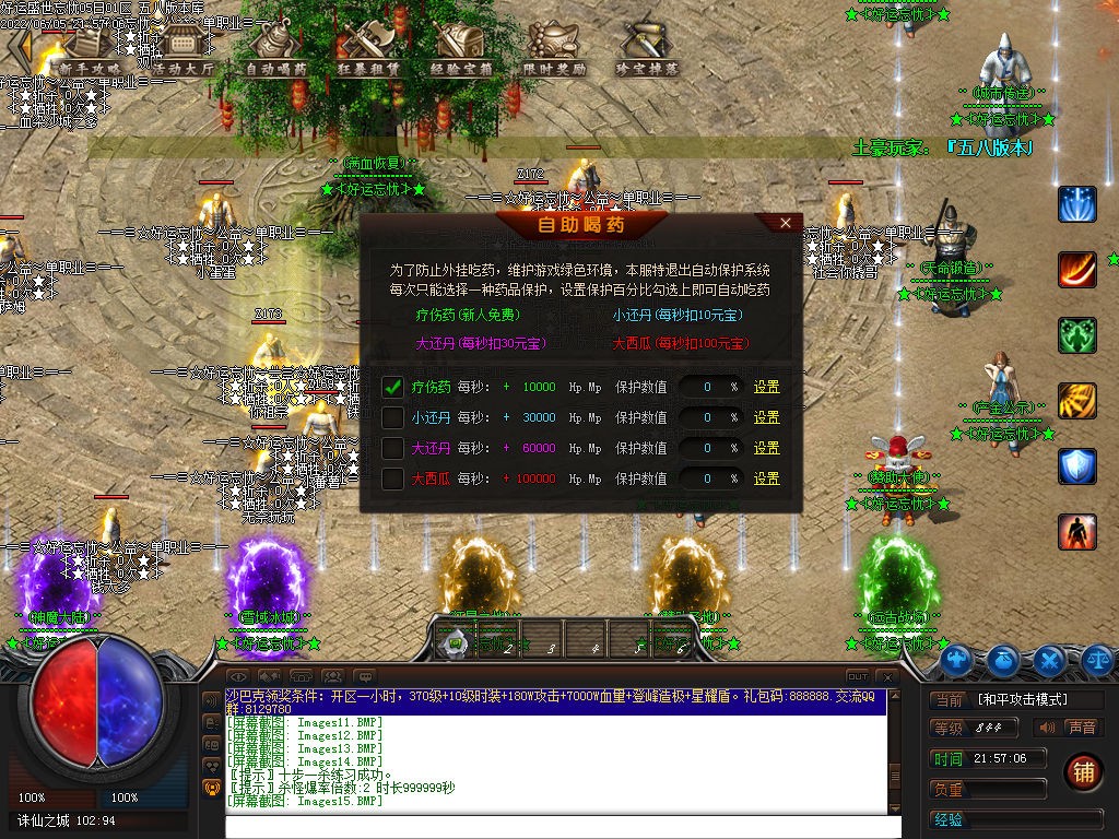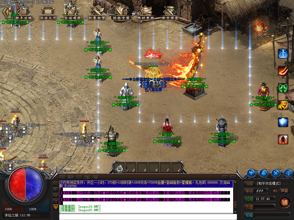 版本介绍:攻城奖励:每个赞助,抽15米作为沙巴克奖励直接发完