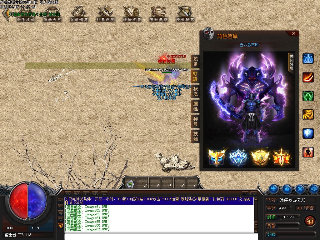 版本介绍:限时奖励:单区千米限时奖励,百件终极装备回收