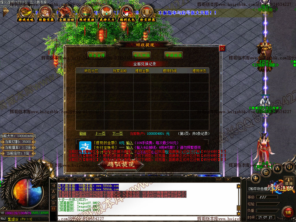 ◆◆◆◆◆◆【不要拿本服爆率低来找借口说亏钱!想玩爆率高的请去玩.跑路服.本服不欢迎】◆◆◆◆◆只要保证号不离线保底也能扛大米