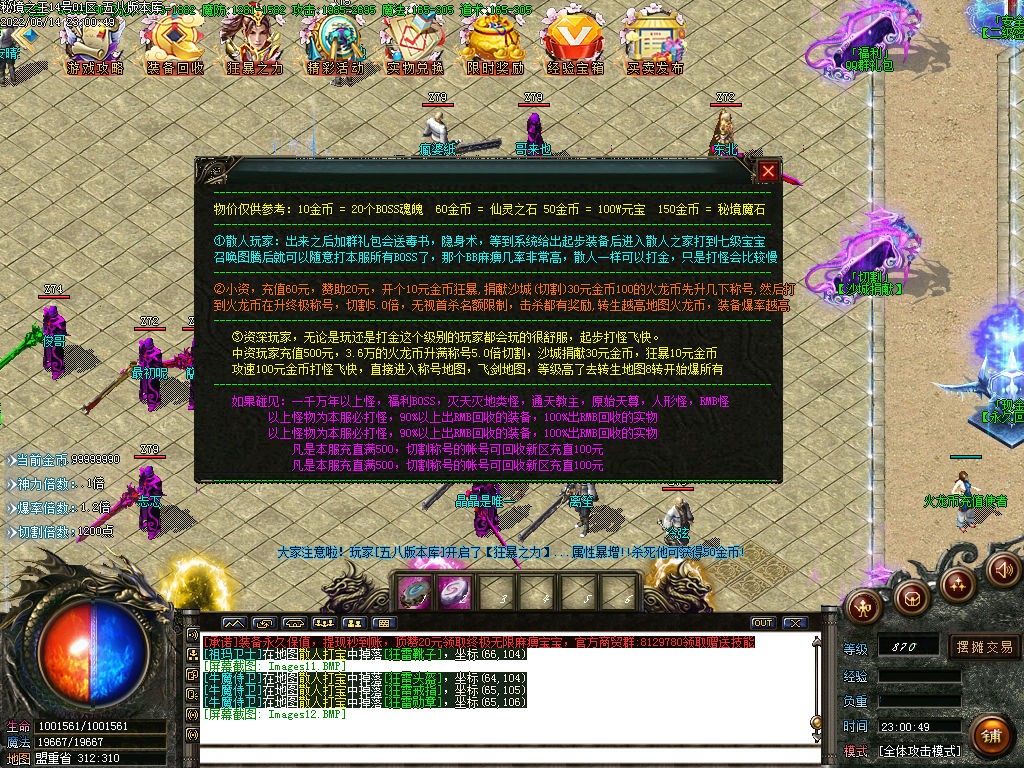【爆率介绍】:本服爆率真正全开,全屏BOSS,血量越多BOSS爆率越高,一切看脸,所有怪物均开放终极爆率!