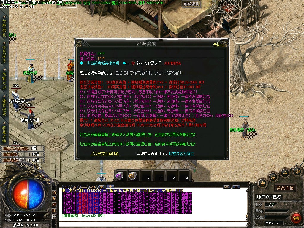 开区第二天晚上合区,第三天晚上统一攻沙奖励+188888元宝!