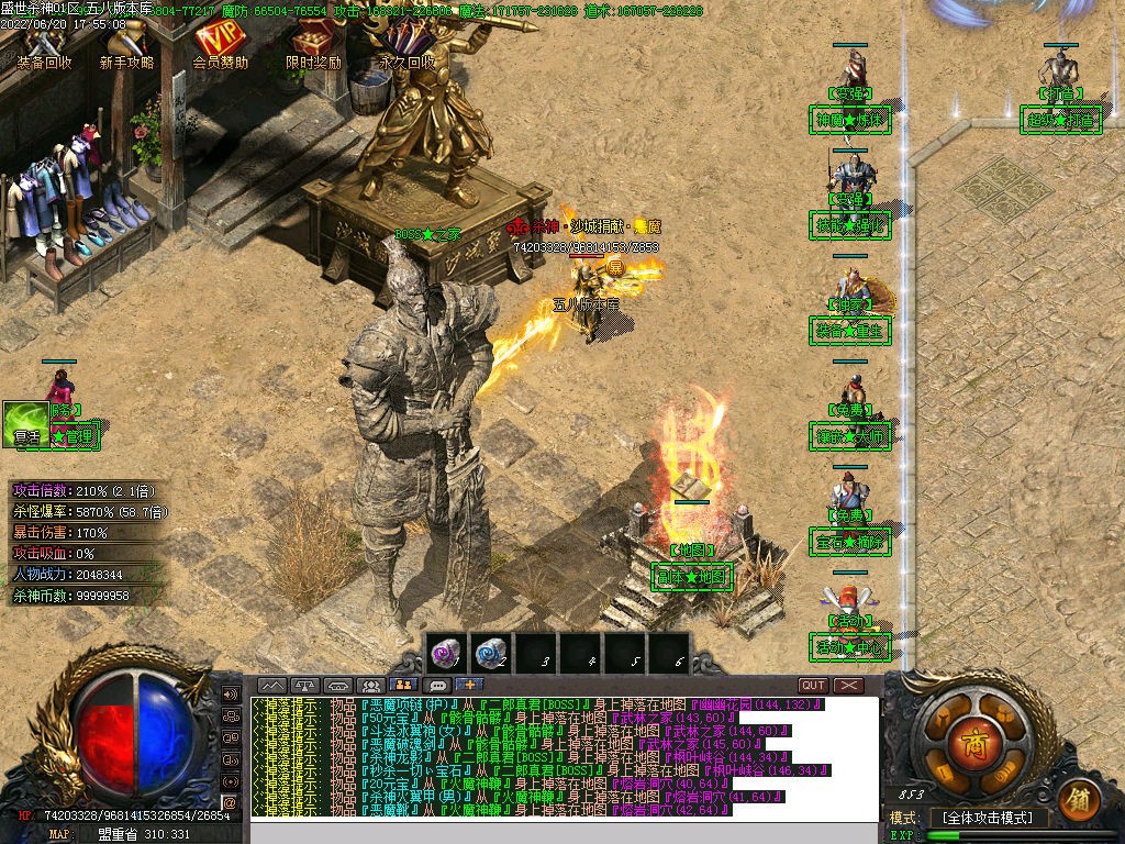 其他东西先不要急,先提升等级下“杀神大陆”才是主要的!地图级别越高,刷出的BOSS爆率越高!