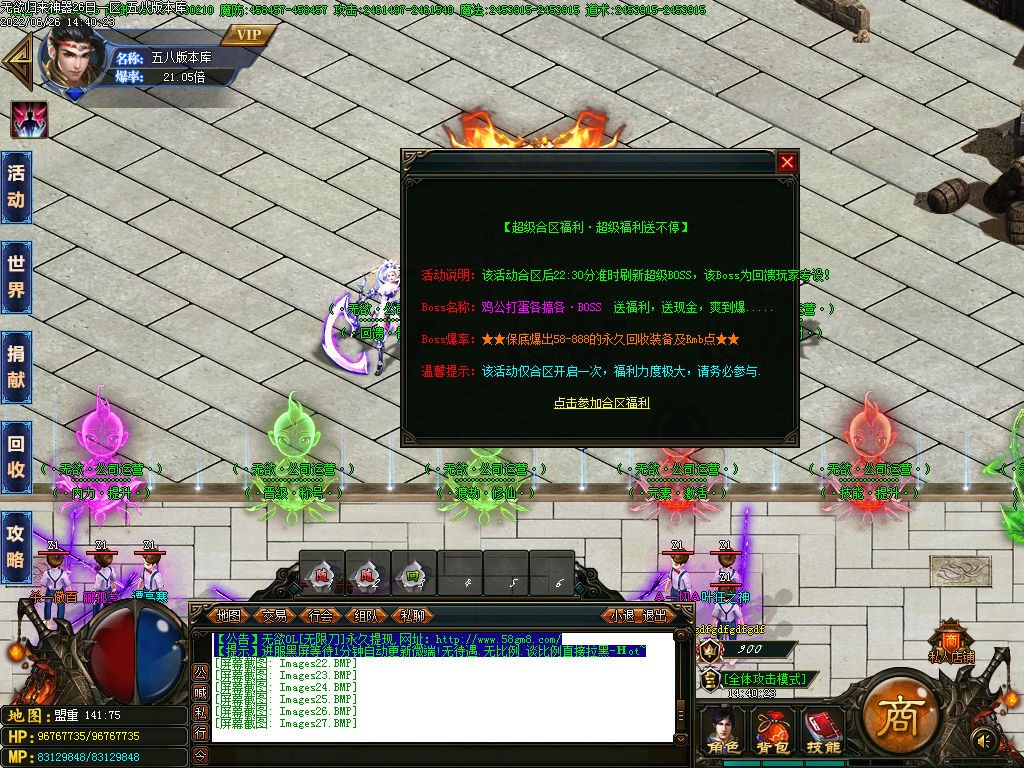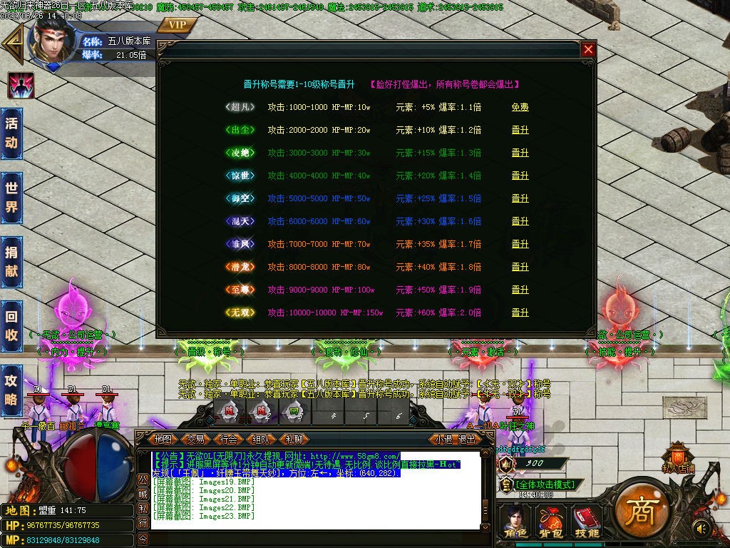 二档:充值58米礼包+30捐献+5狂暴(专属地图)