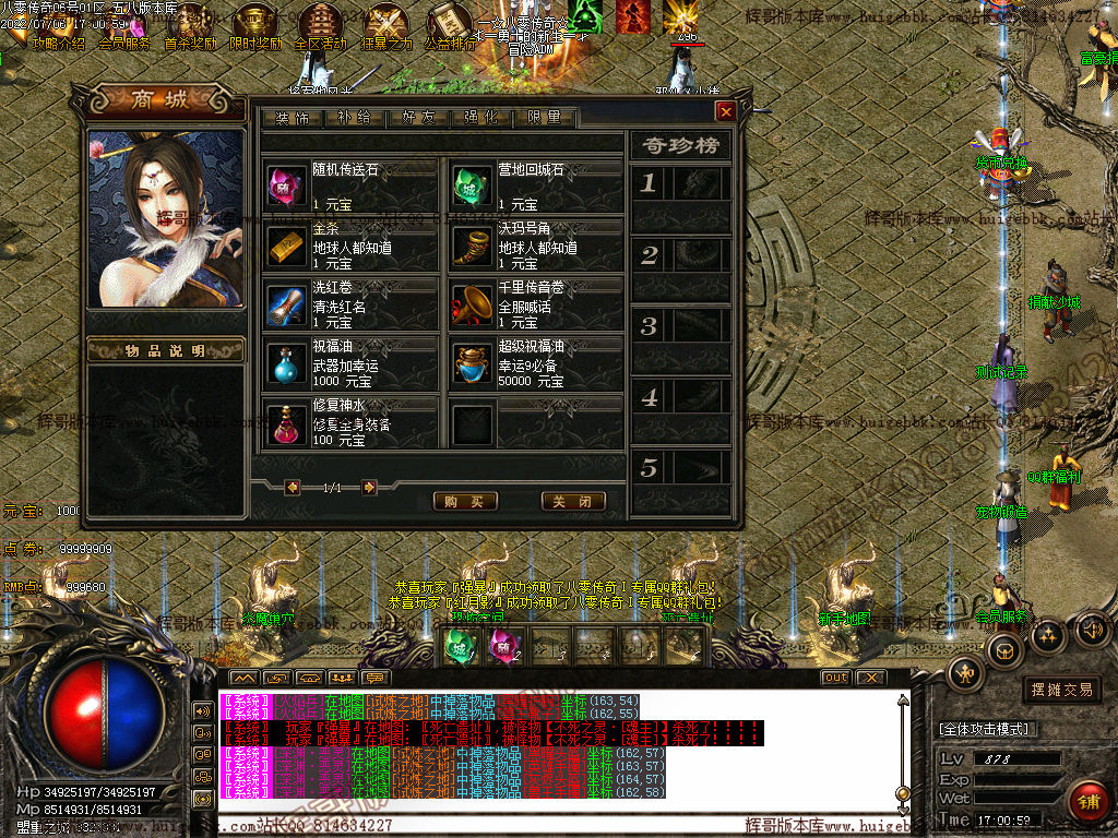 五,游戏充值为米点,1米1米点。 NPC可以自行换取点卷和元宝!