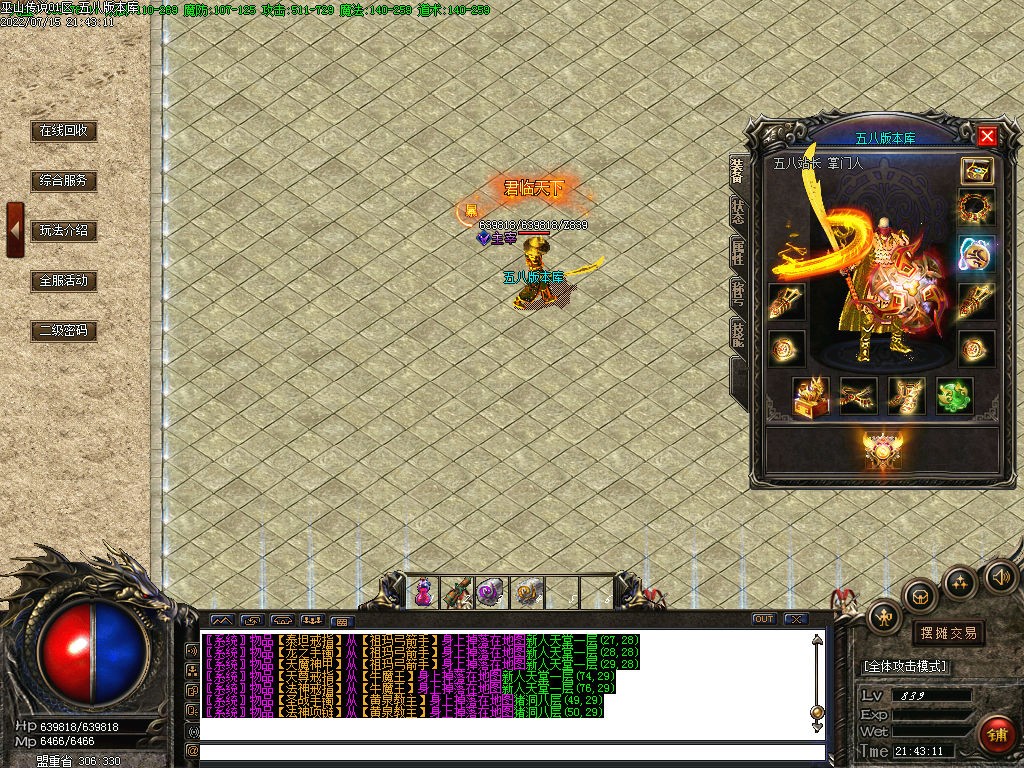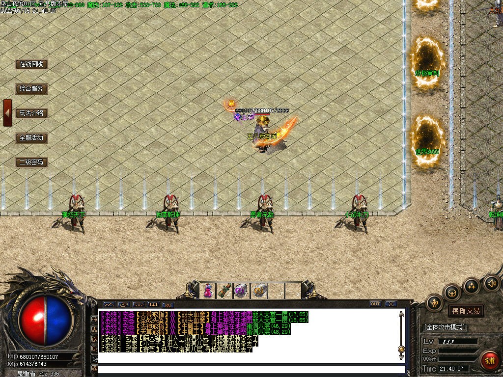 爆率系统: 所有一切装备全部靠爆,终极剑甲需要合成(难得的才值得珍惜)