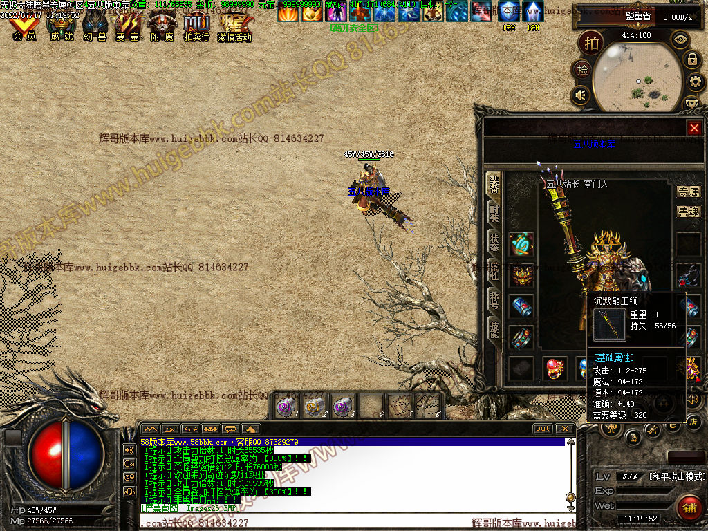 6.新人BOOS乐园 是兽魂10级套最好的出处 加10星不难 有对应兽魂原神 在土 boos精魄处(322.318)合成 前期很长时间你都要带10级10星套过度