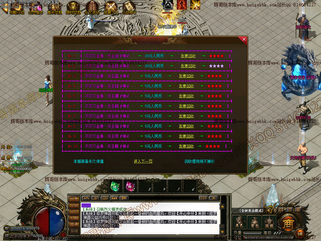 然后直接下图 会员有吸血 第一大陆完全可以横着走 V5会员所有限时奖励 怪物首杀都会额外奖励(包括点券和元宝)