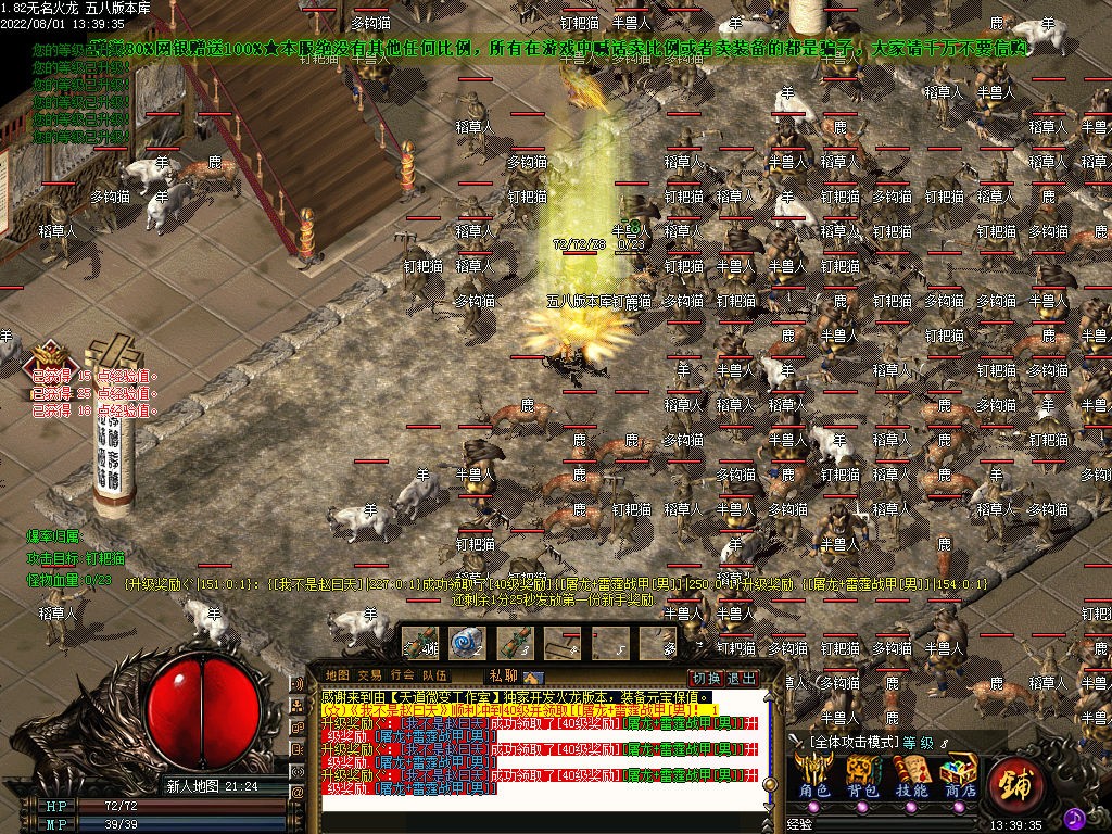【攻沙介绍】:开区第二天中午合区,晚上拿沙奖励300。
