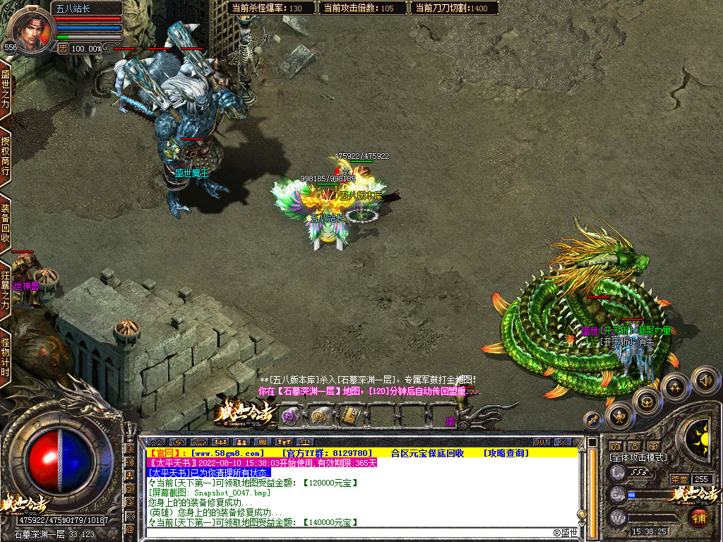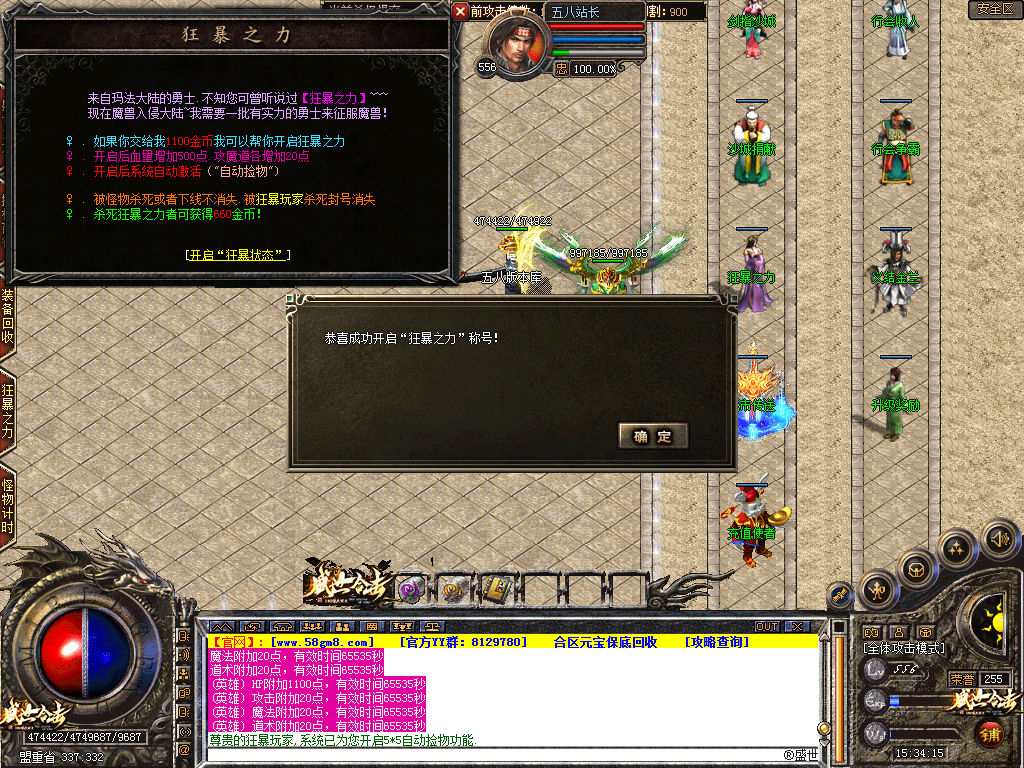 开启狂暴激活自动捡物.高级地图不限制等级.沙捐地图.刷新大量BOSS.刷元宝.打聚灵珠秒回本
