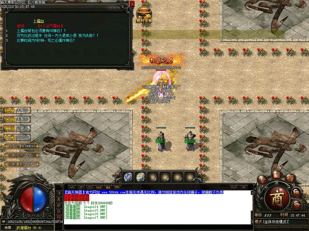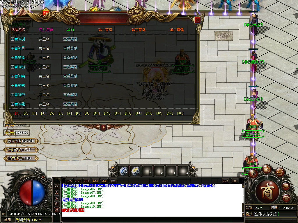 5.正式区开区之后什么都别管,直接点击土城左边激情战场NPC,里面全部白色终极BOSS,满屏怪,两小时全满