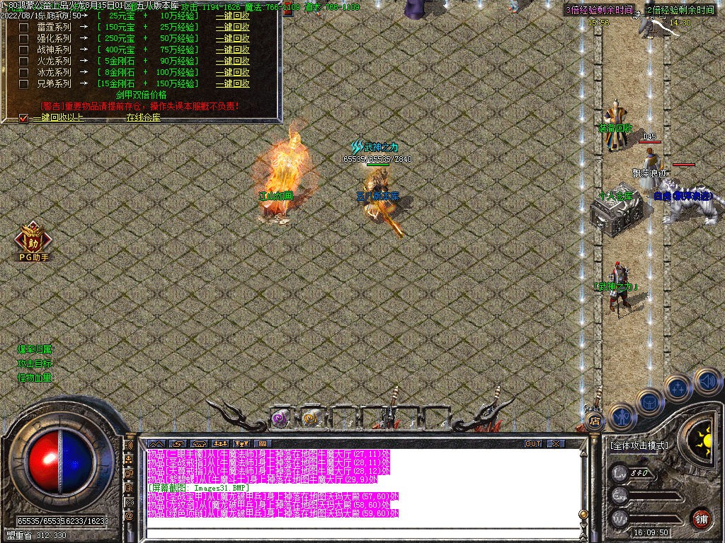 1.80三职业上岛火龙 上线元宝狂暴沙捐斗笠勋草盾牌全部都达