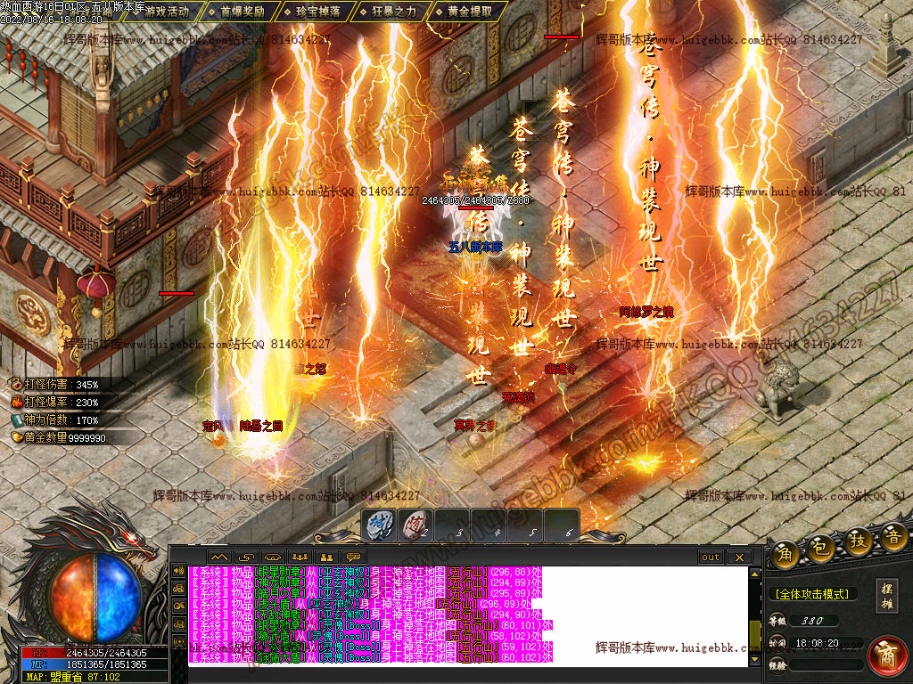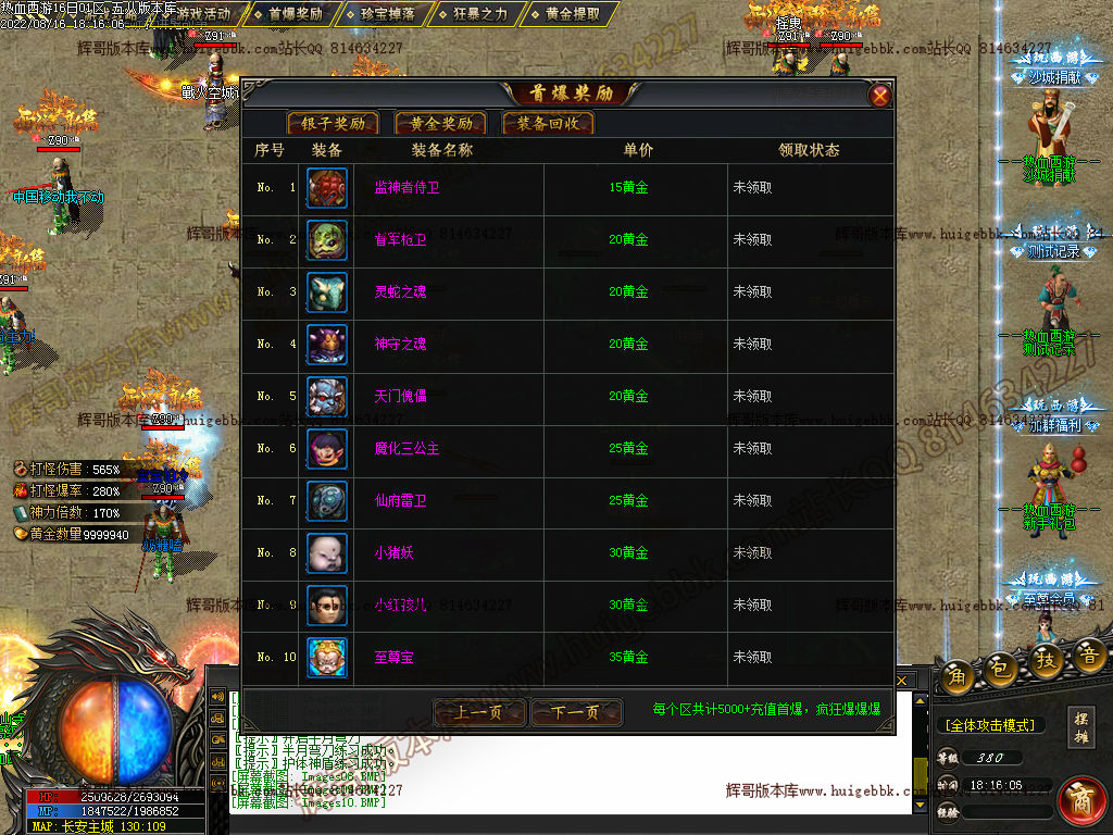 把礼包、沙捐、狂暴该弄的都弄了,各种属性叠加起来,打怪就变得很轻松,爆率叠加起来装备掉落几率很高