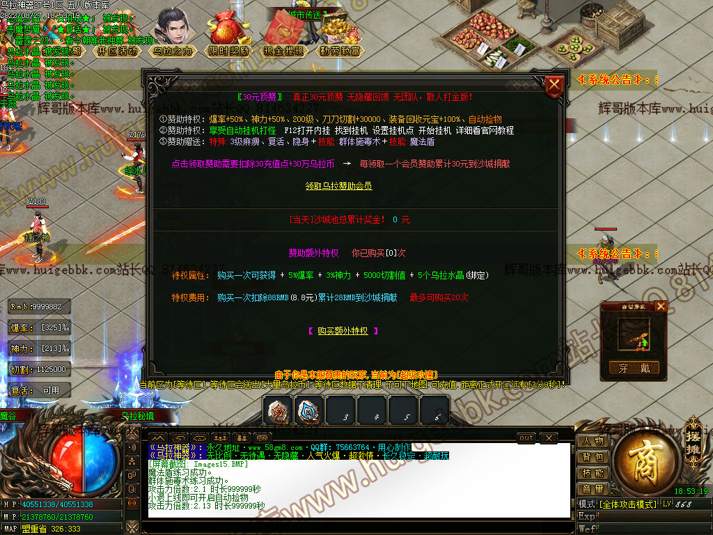 充值30米乌拉币 领取赞助会员(送3级麻痹,复活,魂珠,群毒,魔法盾)