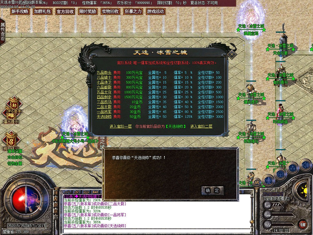 冰雪之城【正版授权】开区第三天合区攻城.首次拿沙奖励10W元宝!