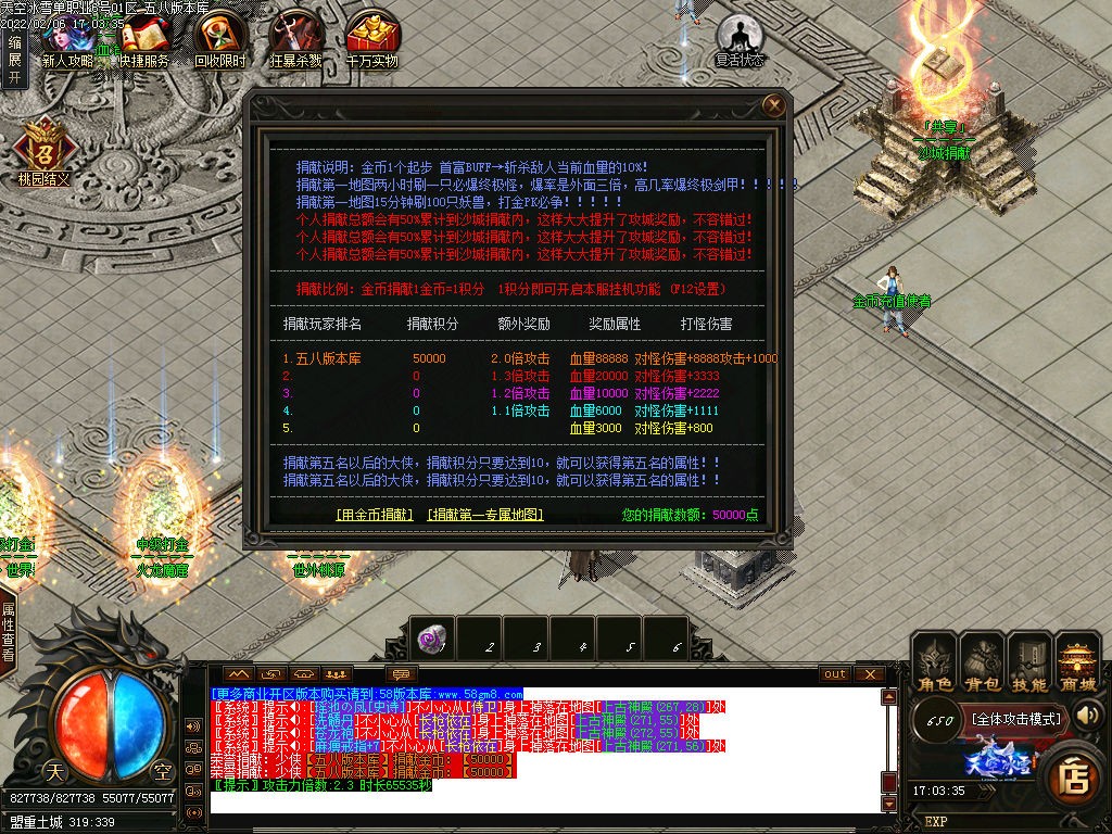 <> <~~~捐献第一地图三倍爆率,有几率爆终级剑甲,土豪必争之地!!!~~~>