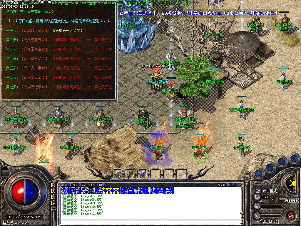 【攻沙奖励】:攻城期间为防止外援,禁止45级以下小号进入皇宫,号角爆率1/1,开区第2天统一设置攻城(不需要祖玛头像),首届城主奖励1888天耀币,守沙奖励888天耀币,赶快召集玩家争夺这笔意外的财富吧!