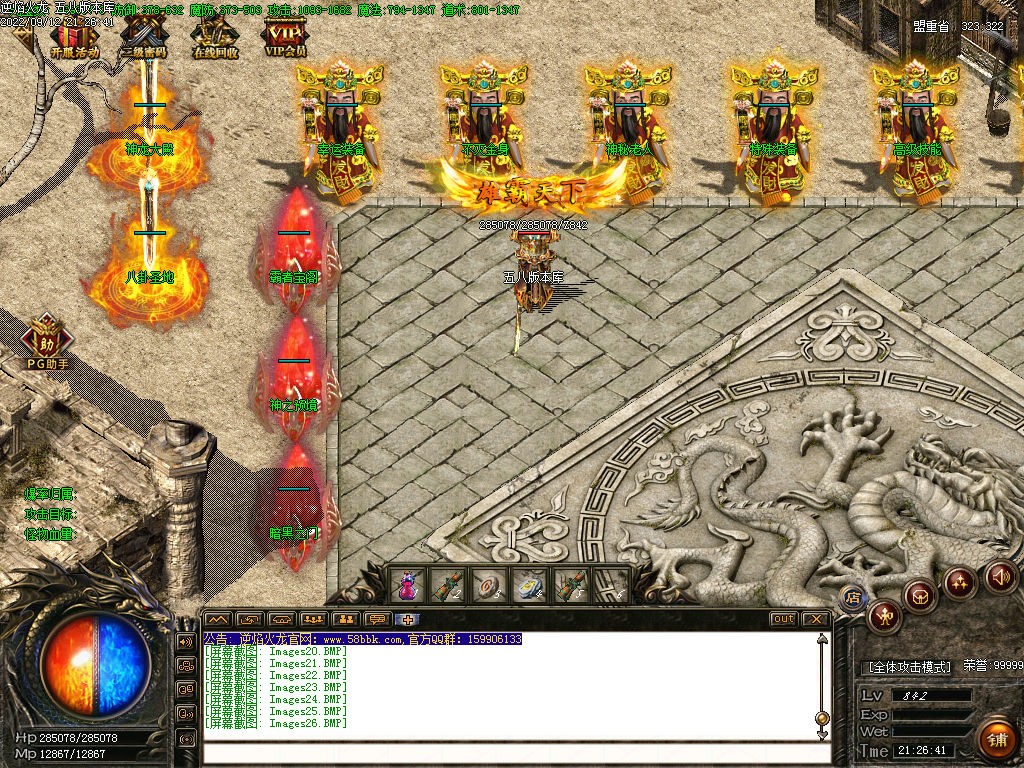 【攻沙设置】:新区开放第二天合区,第三天晚上20点整准时攻沙,攻沙奖励基础元宝20万+全服进地图费用的20%作为攻沙奖励!