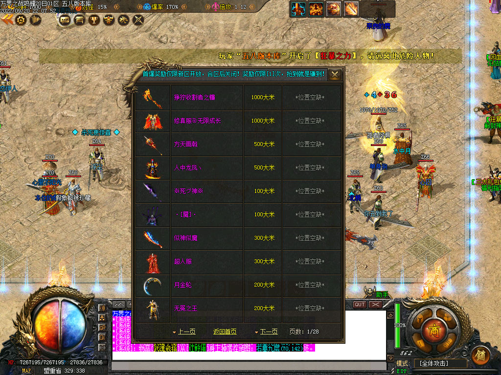 注意:本服无大米消耗,所有消耗游戏产出,白嫖可到顶,有时间你就是爷!