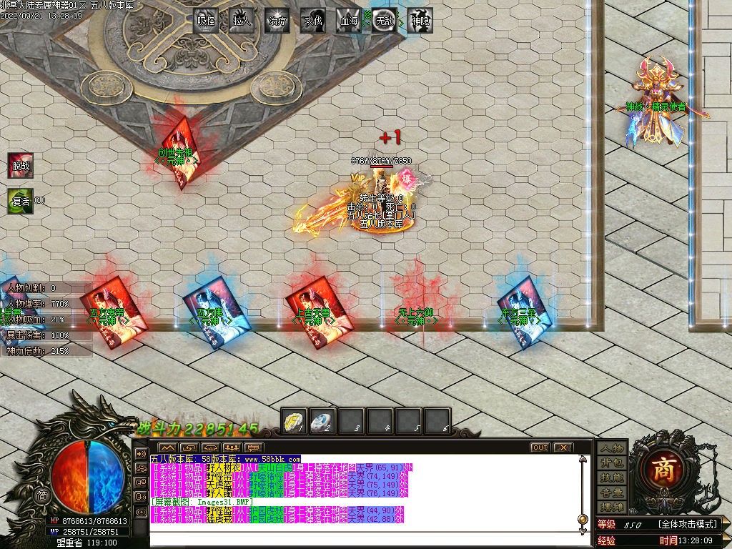 新神技:神之陷身、血海涛天、全屏吸怪、神圣治疗、无敌金刚、妖孽休走、冰封万里、魔神降临.