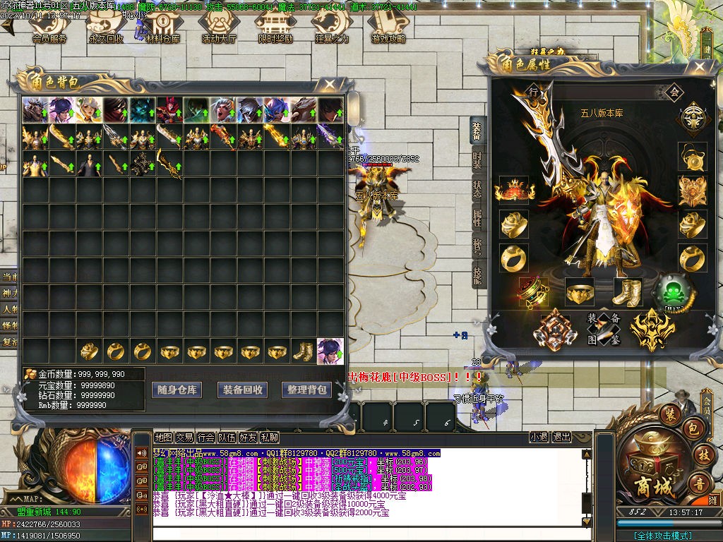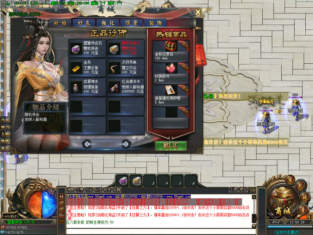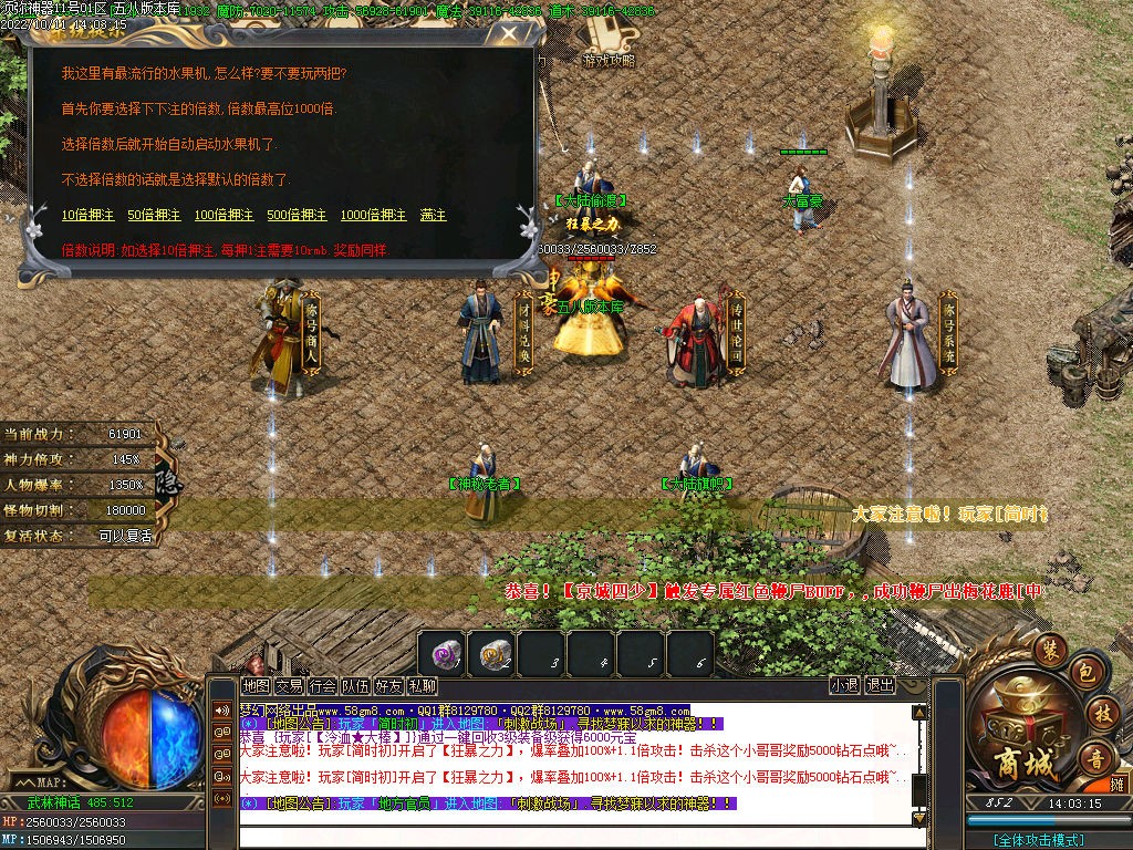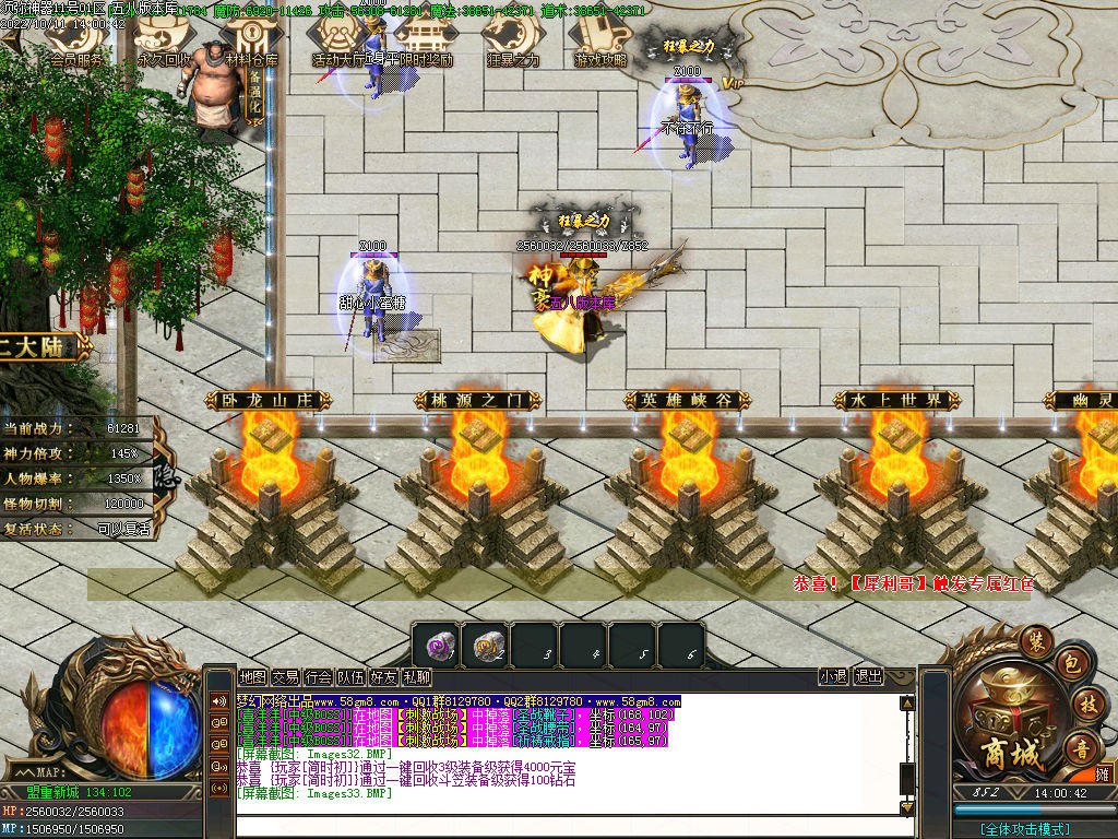 【元宝比例】:米充值1:10+1积分 打怪也可获得