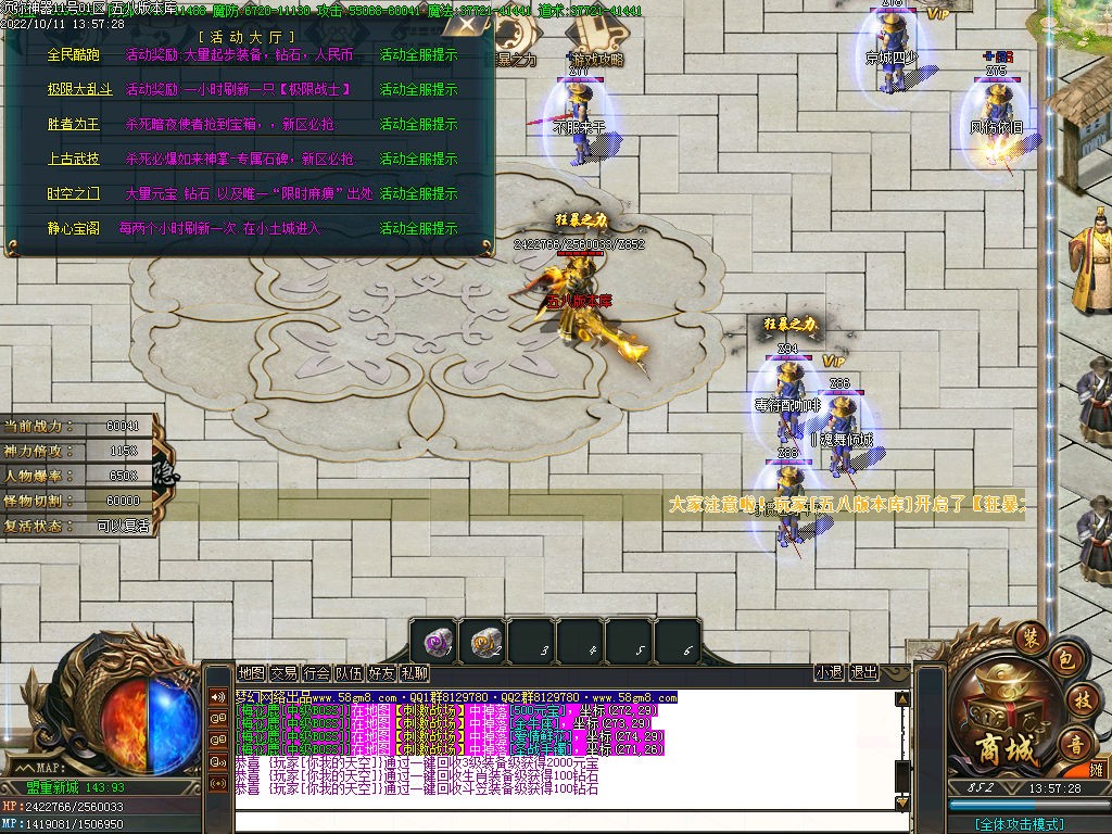 【装备介绍】:低消费,大激情,无限刀,游戏流畅,免费捡取,免费自动回收,会员免费送