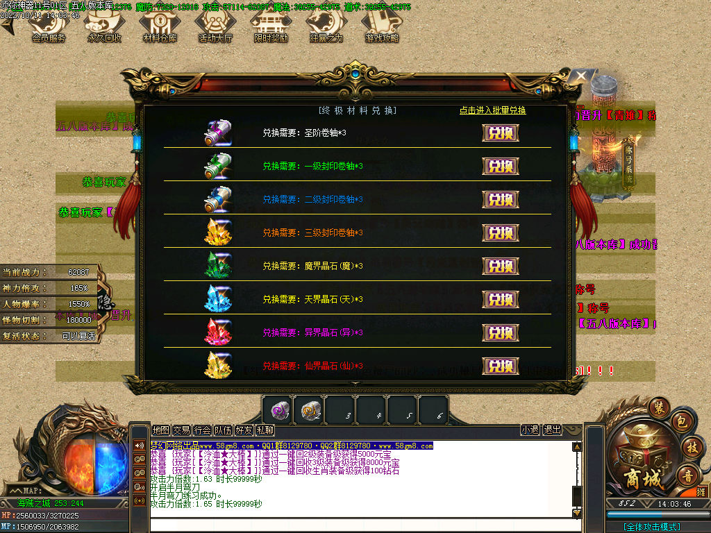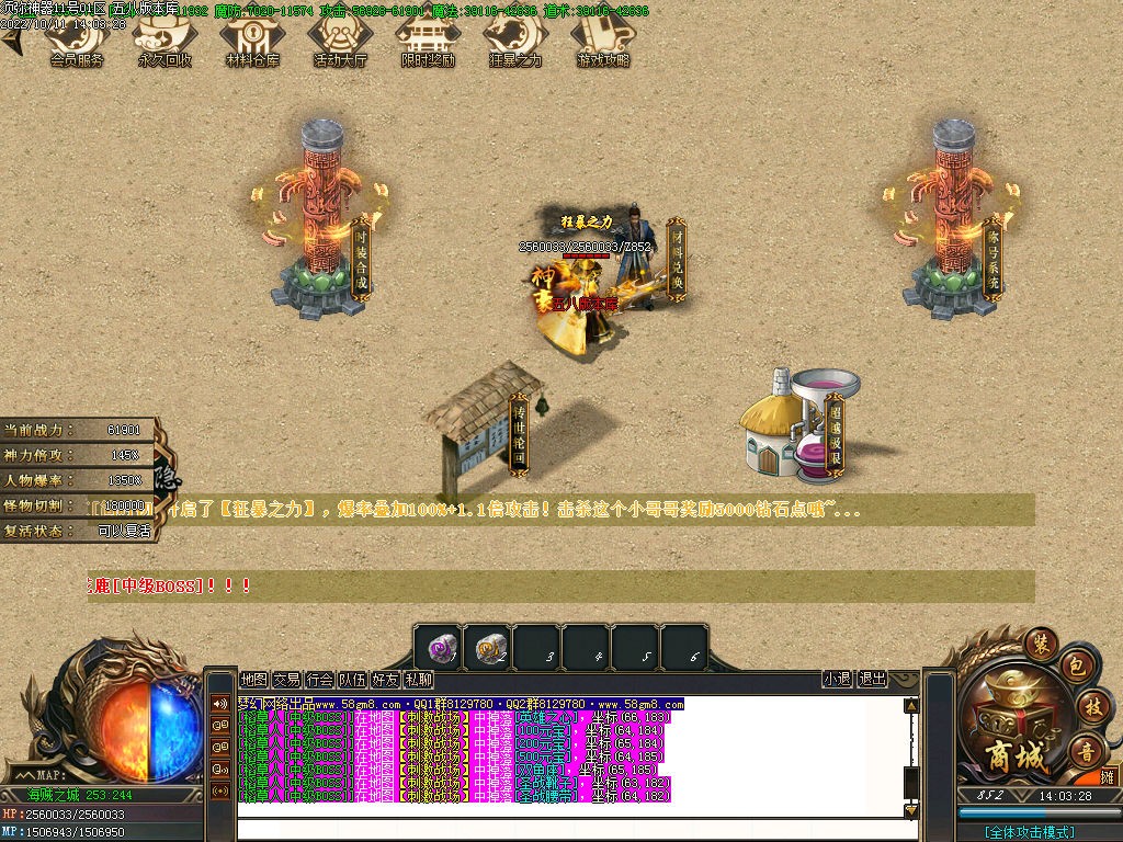 【地图介绍】:每个地图都有不同级别的BOSS都可爆终极。人人到终极