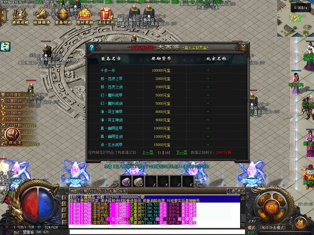 30米沙捐赠送牛逼属性,血量,攻速等大幅度提升,拥有专属沙捐地图,更加超值的是沙捐后随机赠送鬼王级宝宝一只(宝宝可麻痹全服所有怪物,对玄级,虚空级,至尊级怪物有几率麻痹)