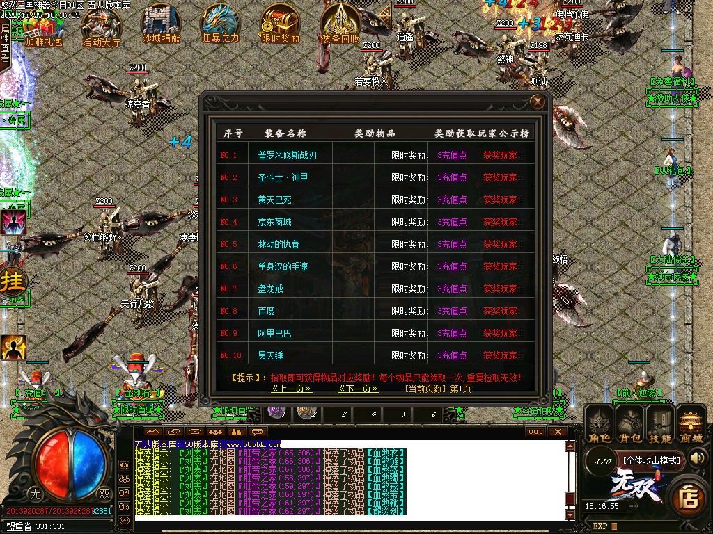 【地图介绍】:每个地图都有不同级别的BOSS都可爆终极。所有回馈均为自免费打领取,不存在任何暗坑不合理收费