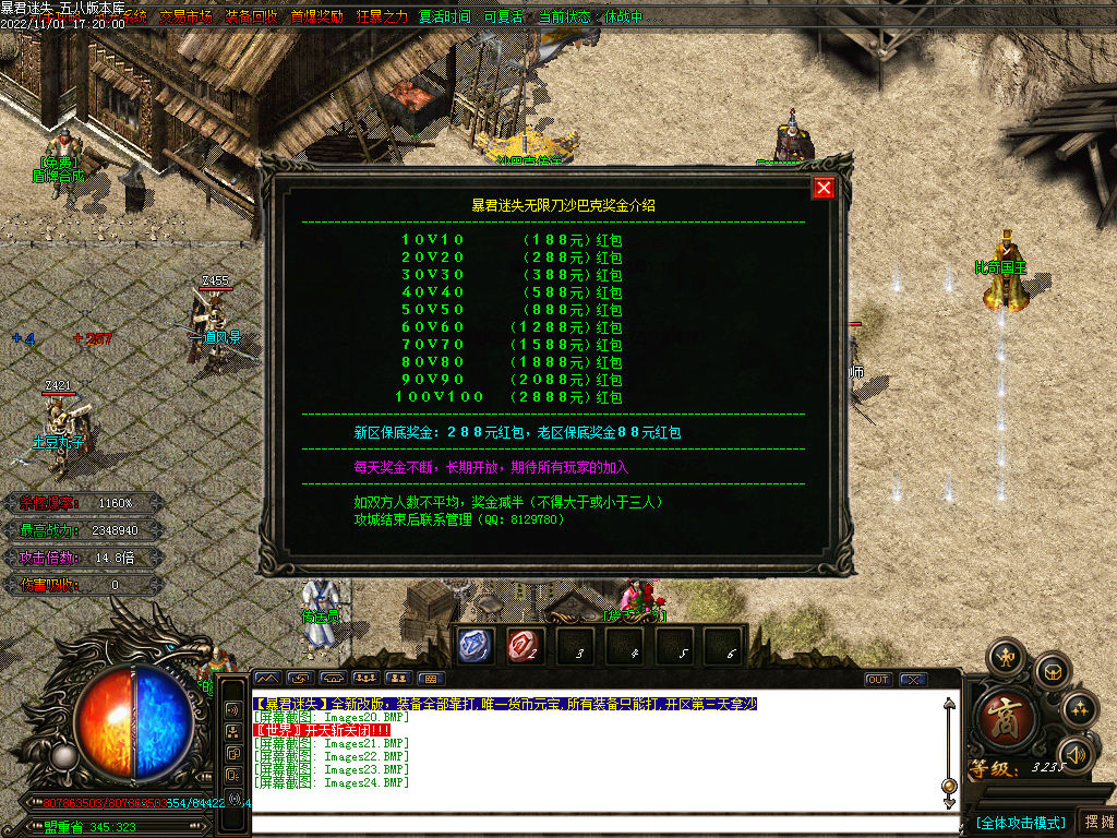 本服当天新区第三天中午合区集体拿沙,奖励5888万元宝+288米,老区天天拿沙奖励1888万元宝+88米!