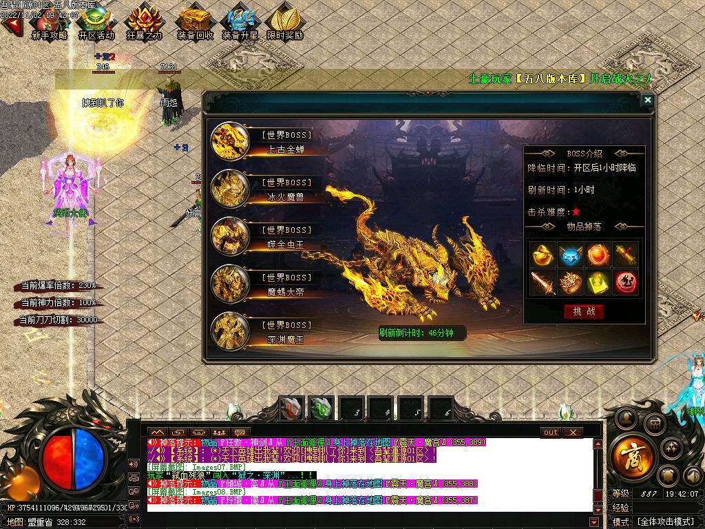 世界BOSS必爆大额的神晶和元宝.前期必打..每个地图还有福利B0SS..