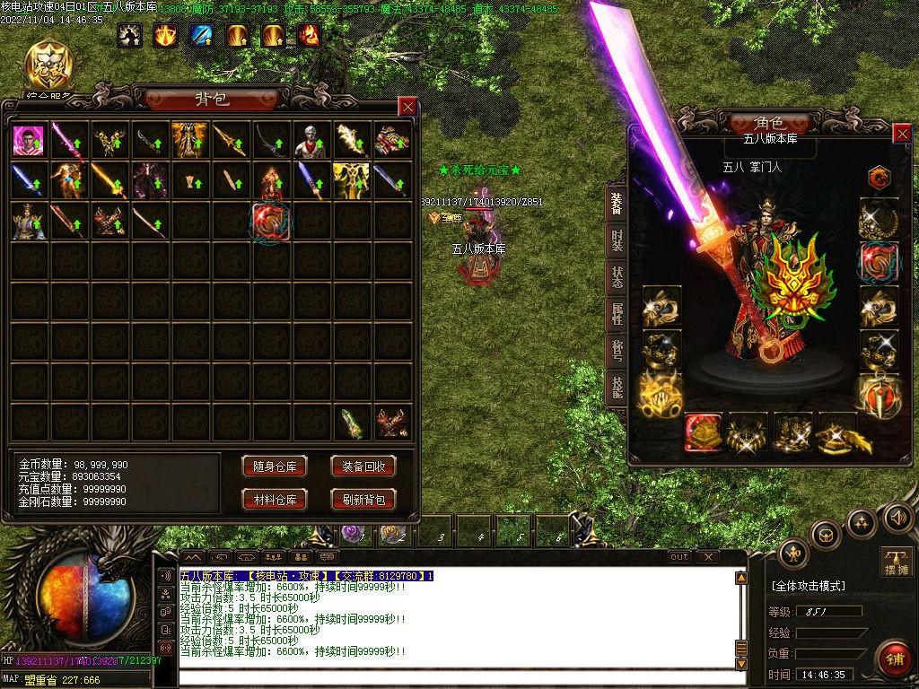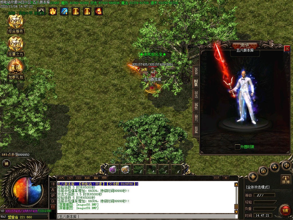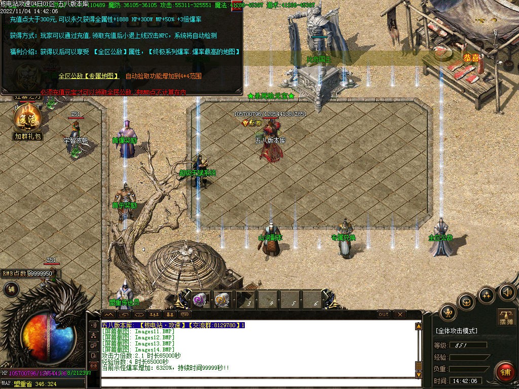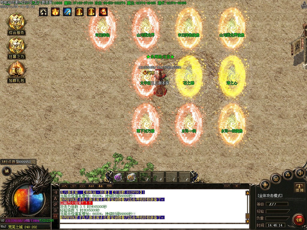 1:【狂暴状态】人物会显示.杀我给元宝.可大退小退,未死亡效果永久保留