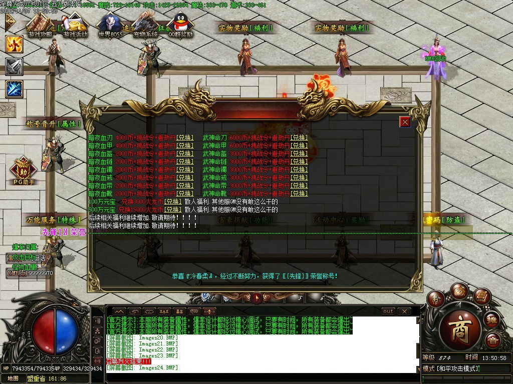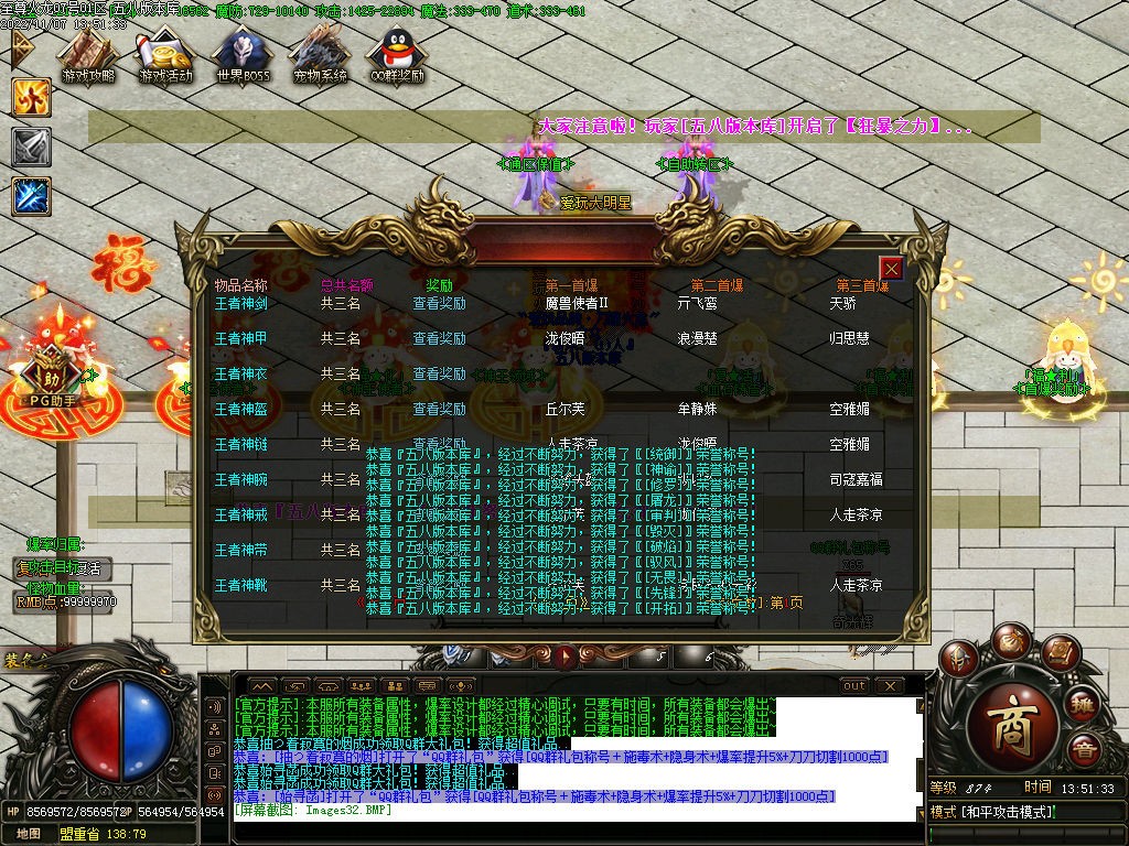 欢迎进入爱玩品牌火龙,我们力争保证:公平,公证,公开,认真对待每一个玩家。本服禁止开任何辅助外挂,发现或者举报,核实成功,不管充不充值,立马封号处理!!!如果觉得存在侥幸心理的玩家不怕封号就开下试试!!!