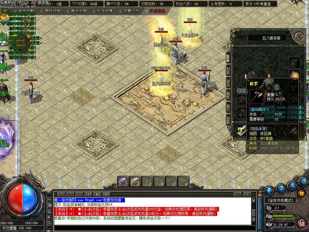狂暴 6 充值点 爆率 神力 血量 几率切割怪物1%血量