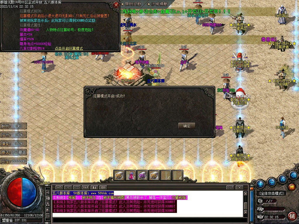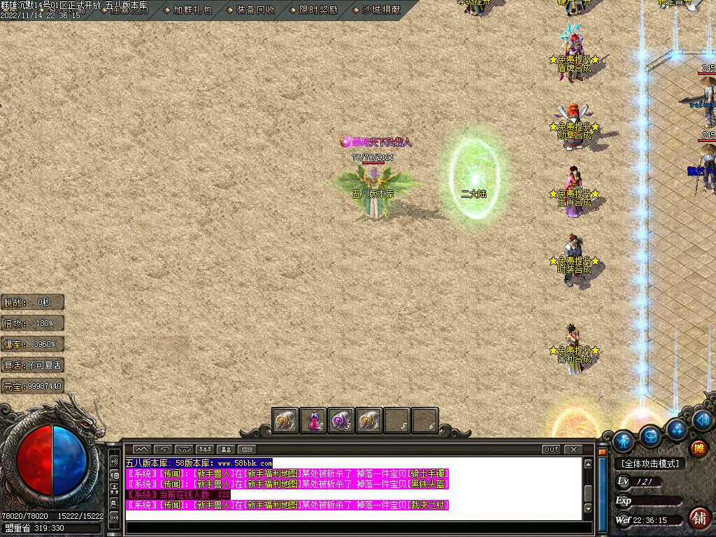直接充值188,把礼包全领了,狂暴开启,沙城捐献必须要开,本服不设置顶榜玩法,前五名玩家都可以享受超高福利待遇,爆率、倍攻、专属地图、随身泡点30000经验等等!土豪就是浪!骨灰就是狂!上线就砍!