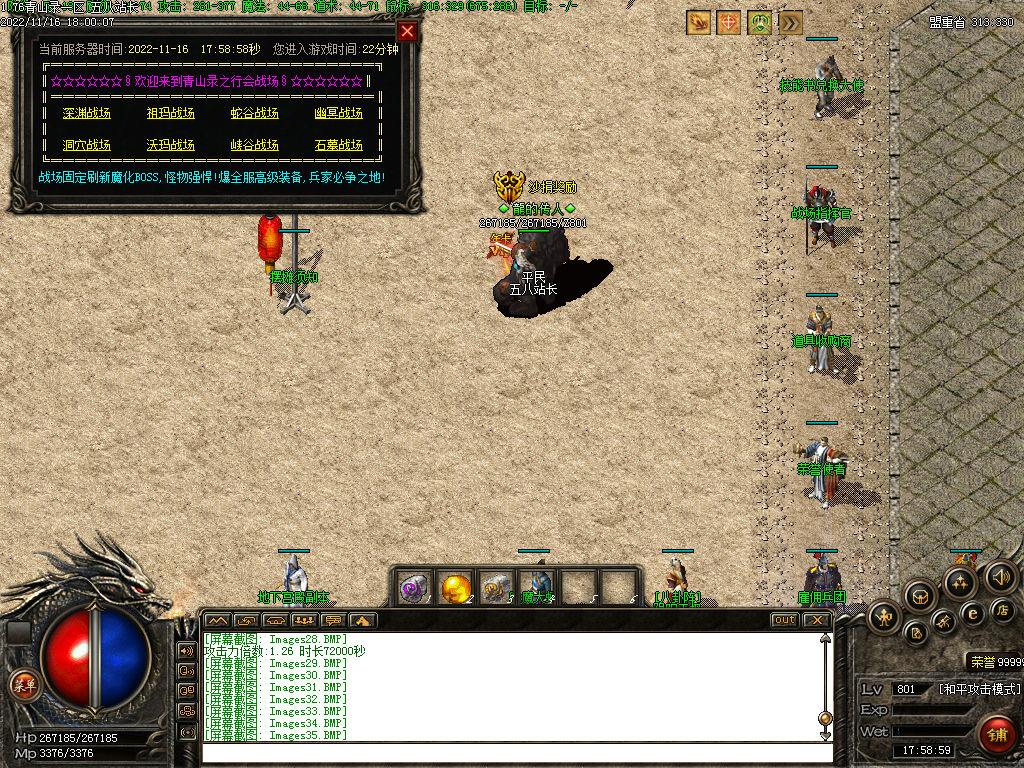 道士:沉默玩家都知道,道士是灵魂,这个服也一样,前期道士一个麒麟基本可以横扫初中高级地图了,后期50麒麟变业火,可以单挑全服任何BOSS。