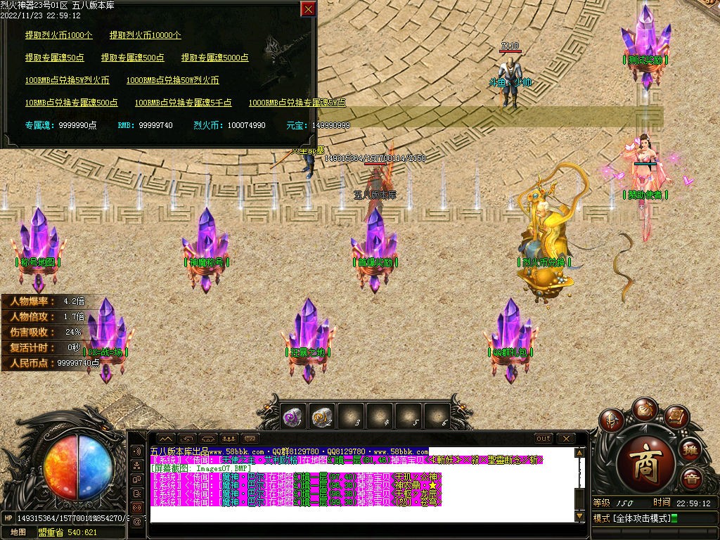 1.30米捐献:充值30米米开启捐献,获得刀刀冰冻,超强属性★★★