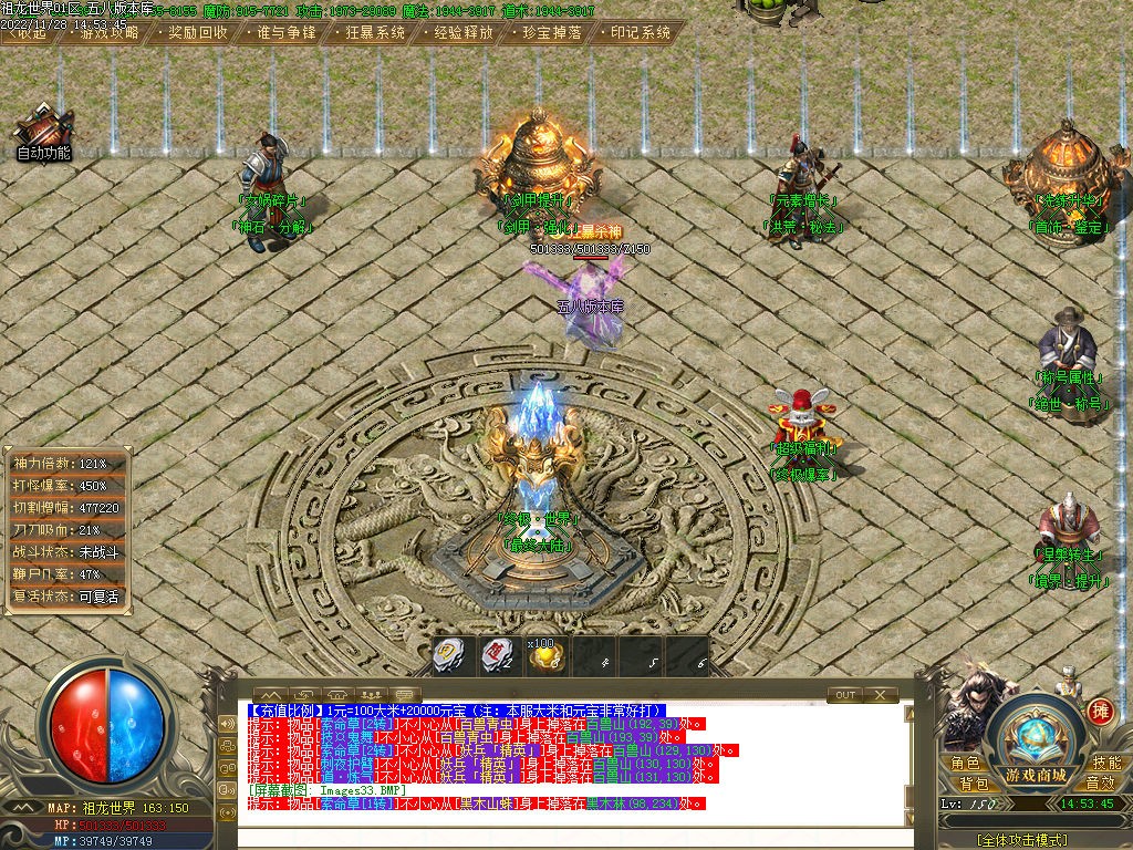 奇遇系统:九龙神石等级越高,触发几率越高,奇遇BOSS爆率超高,额外掉落印记。