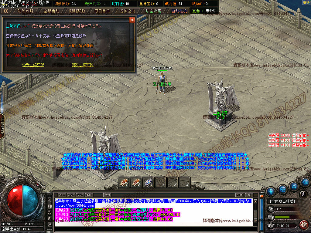 最后提示:测试区获得的金币可在土城右边NPC处记录领取!