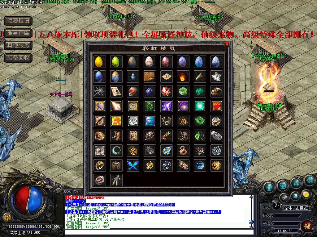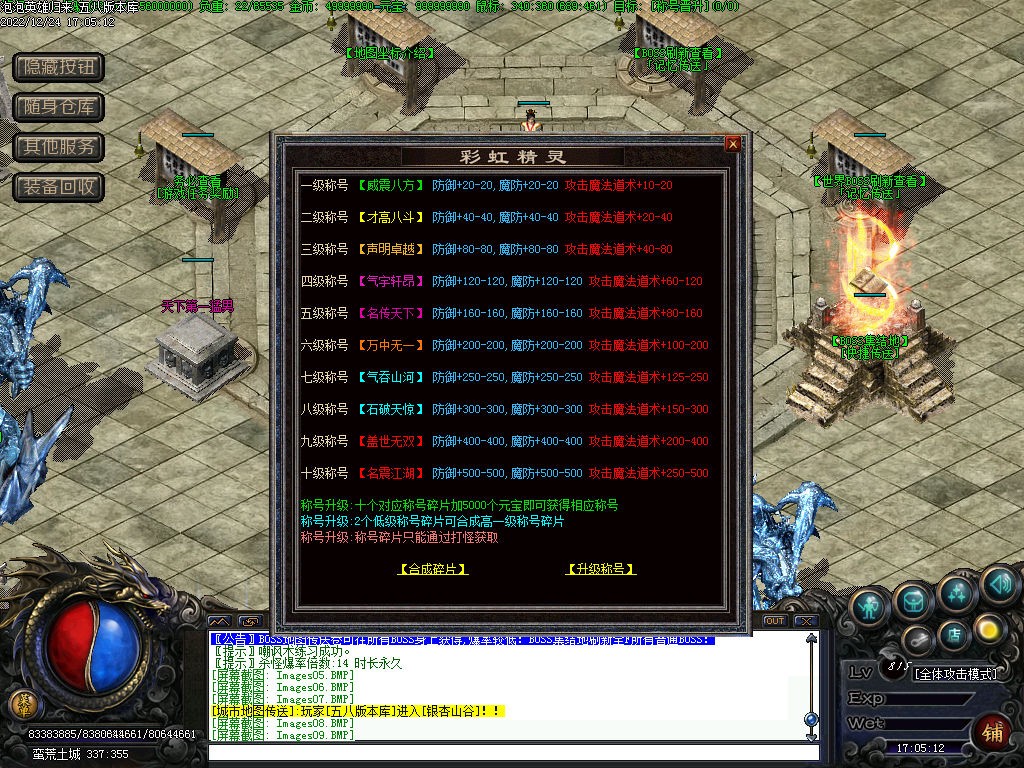本服只出售灵符,BOSS可爆出灵符抵用卷,所有boss刷新时间为半个小时