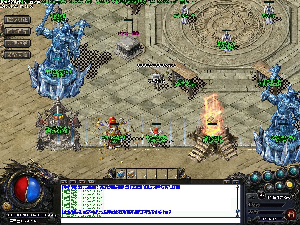 主城内有地图坐标查询NPC和记忆传送BOSS地图NPC,快捷打宝轻松又便利