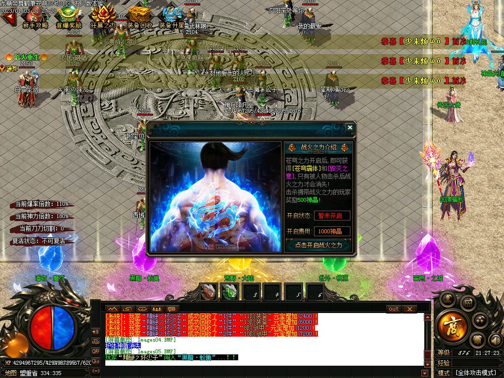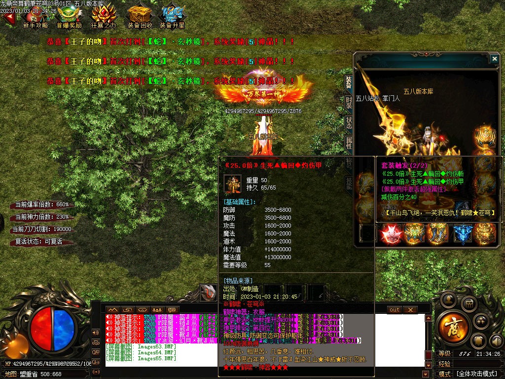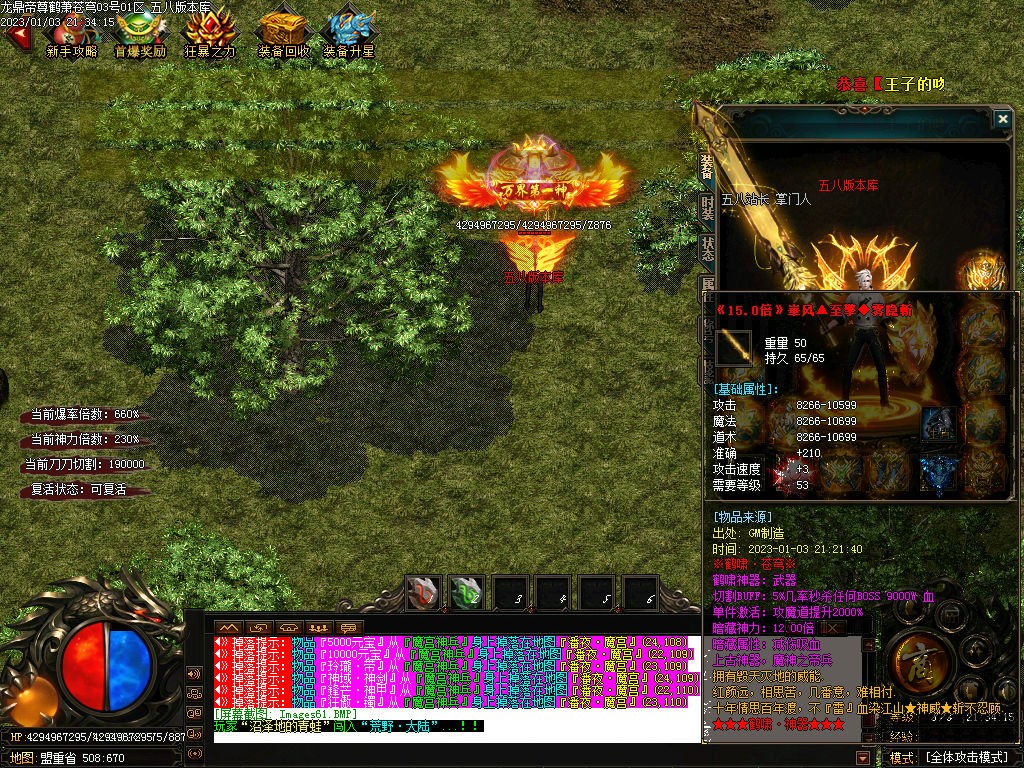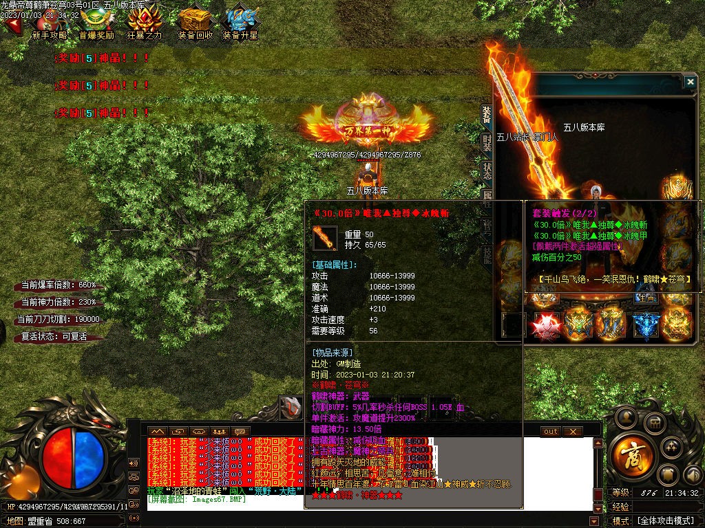 3仙豪玩家冲点钱,搞3大陆称号是刀刀切割《盾加攻击攻速爆率回血满盾自动送魔法盾)