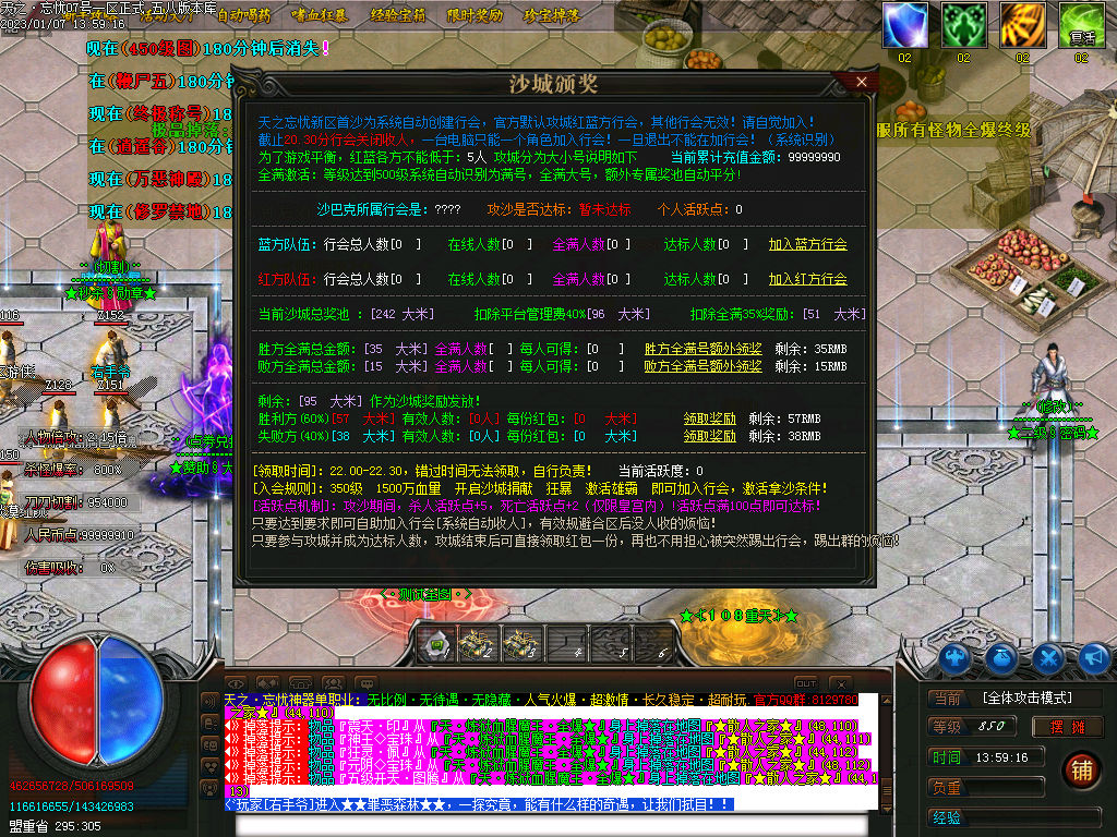 │充值玩法 → 赞助免费 + 10米狂暴 + 20米沙捐 = 【30米】 (开启之路) │