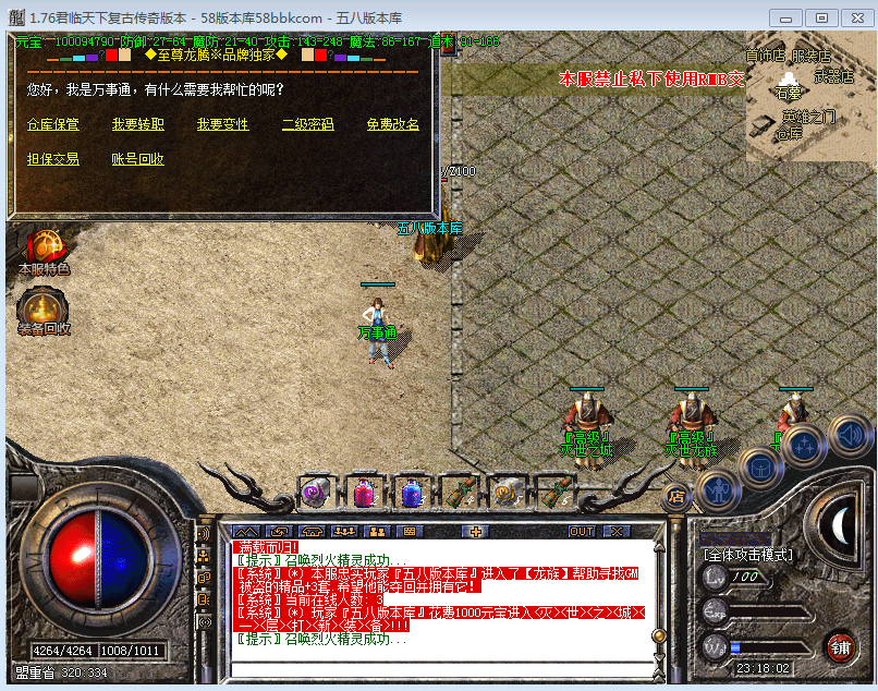 脱胎换骨显英雄 倾城倾国驿情缘 ╔┯╗ ╔┯╗ ╔┯╗ ╔┯╗ ┠至┨ ┠尊┨ ┠龍┨ ┠腾┨ ╚┷╝ ╚┷╝ ╚┷╝ ╚┷╝ 打造精品复古传奇第一品牌 ╭══════════════╮ ║ ¤╭⌒╮╭⌒╮欢迎光临 ║ ║ ╱◥██◣ ╭⌒╮ ║ ║︱田︱田田| ╰------------- ║ ║╬╬╬╬╬╬╬╬╬╬╬╬╬ ║ ║ ║ ║◆发现外挂加速者,永久封号◆║ ╰══════════════╯ ╔┯╗ ╔┯╗ ╔┯╗ ╔┯╗ ┠长┨ ┠久┨ ┠稳┨ ┠定┨ ╚┷╝ ╚┷╝ ╚┷╝ ╚┷╝元宝好打,终极好暴,长期不变态,纯绿色游戏,散人天堂!本服无残废NPC,无垃圾活动,游戏设置简单明了!不再需要去摸索! 来就玩,玩就爽!★★★★游戏PK,打装备都做了最大优化,绝不会让任何一个玩家感觉到枯燥乏味★★★★品牌好F难求,不能独享,可别忘了给您的朋友推荐噢!1米=1000元宝,神州行赠送100%,网银赠送100%攻城[首任城主奖10万元宝2个BOSS令牌],每天6-8个新区,区区火爆,新区第2天晚上攻沙,激情憋尿!【本服宗旨】 让玩家公平,让玩家玩起激情!永不出售装备!请骨灰玩家认准好服!挂B以及快餐玩家请绕过,本服100%封杀外挂,长期F,装备全爆,暴率适中,所有玩家都能打到好的装备.【1.76精品复古版|斗牛系统|100%封杀加速|小极品可爆+5|运9好搞|新装备|新地图|活动超多|装备爆率高】★★★★独家1.76全新精品版本-[任务多-地图多-装备全爆纯绿色游戏]★★★★★★★★地图N多,活动N多,鄙视关F内F的GM!非常耐玩·散人长期服首选★★★★==============================================================================