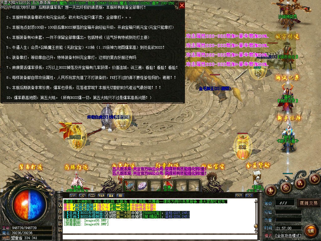 5、牛逼人生:会员+召唤魔王技能(无敌宝宝)+10转(1.15倍神力地图爆率高)到处乱砍BOSS!