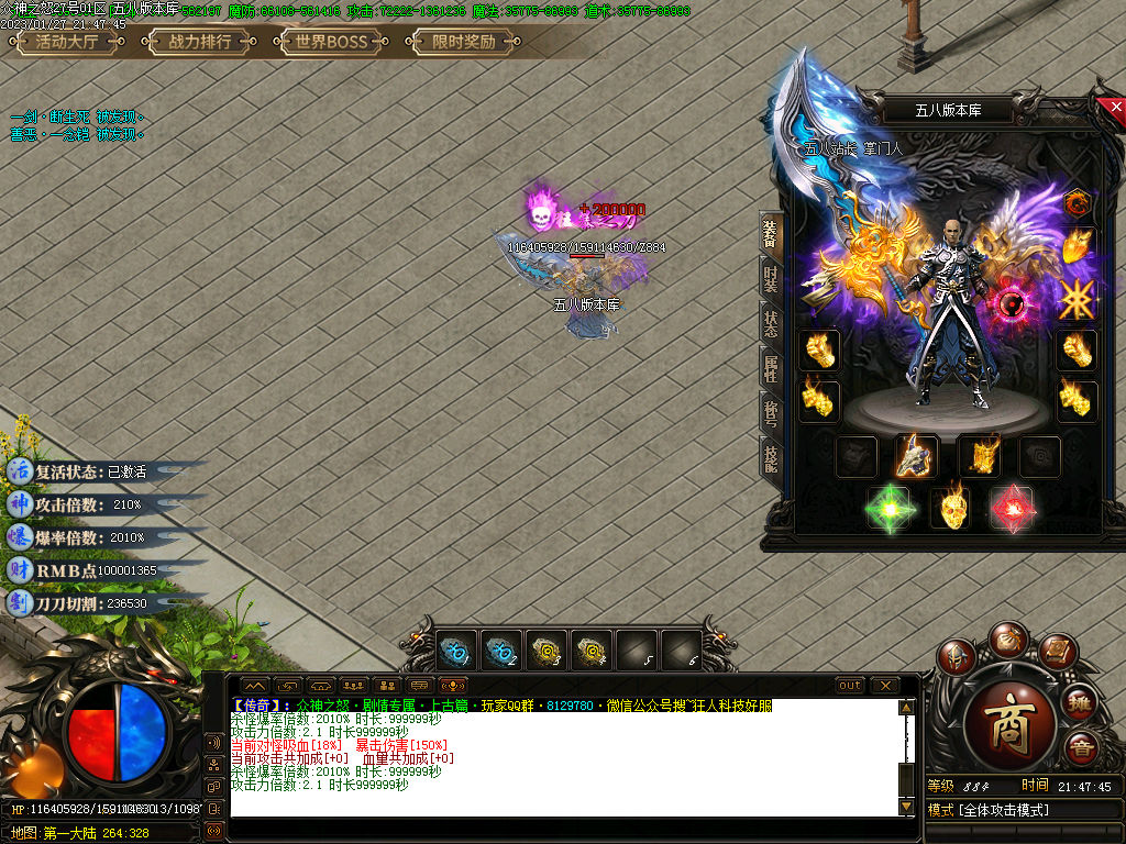 打怪 必爆专属装备 刷元宝的好地方。以后就慢慢探索吧!时间等于金钱!!!