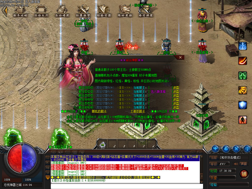 送财童子 开区 30分钟 开启一次活动(给可传送的提示) 土药店 散出物品