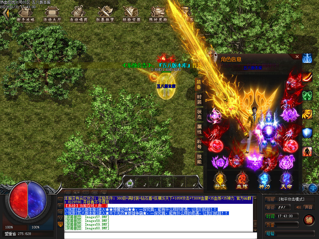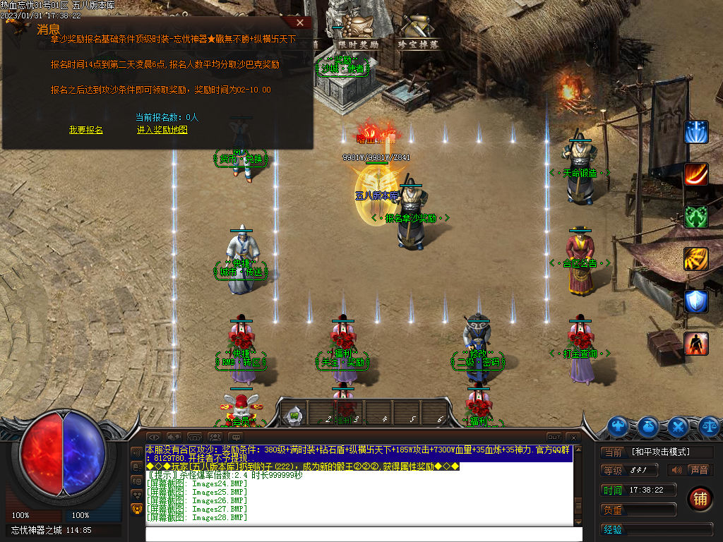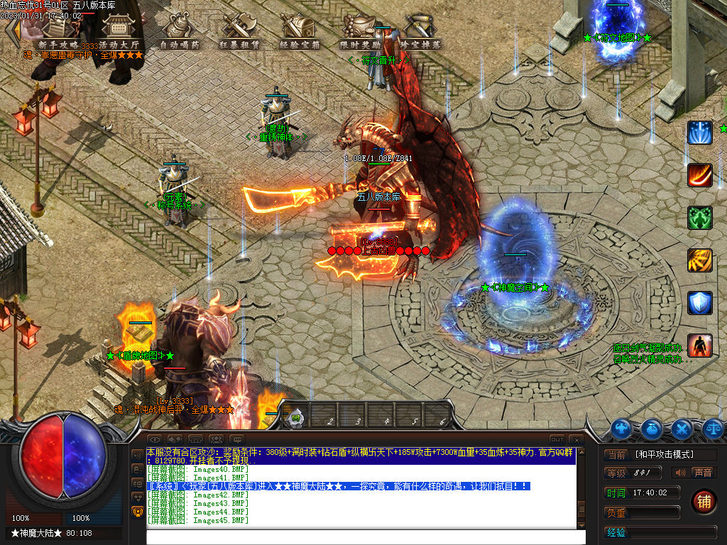 怪物爆率从低到高: ●●●●上古凶兽●●●● ●●●●不死神王●●●● (红色) 刷新时间 : 60分钟