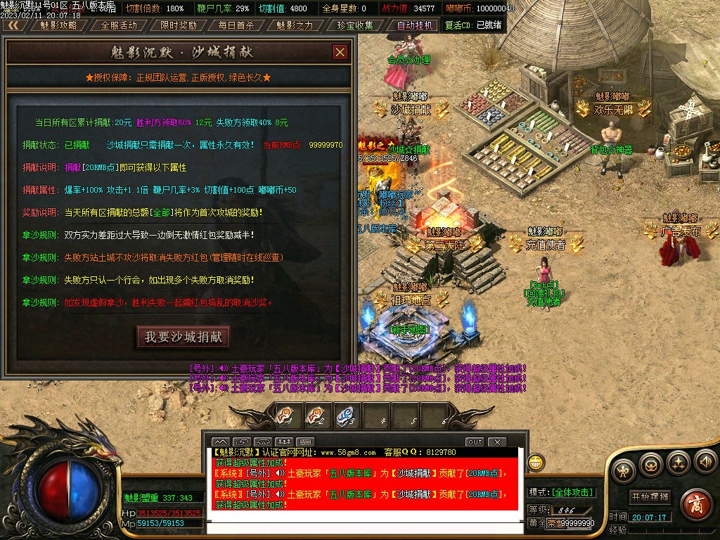 奖励说明:当天所有区捐献的总额[全部将作为首次攻城的奖励