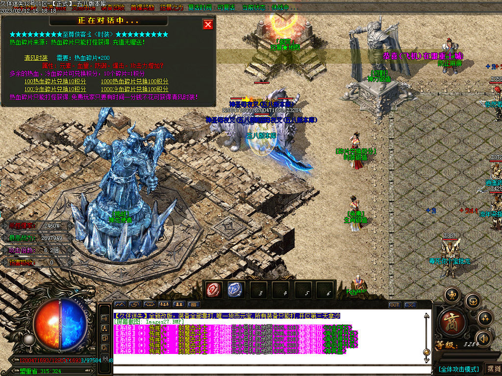 捐献(30米)可获得:1.1倍属性 + 200%爆率称号(★公爵★)+ 自动挂机 + 刀刀冰冻 + 十步一杀技能!