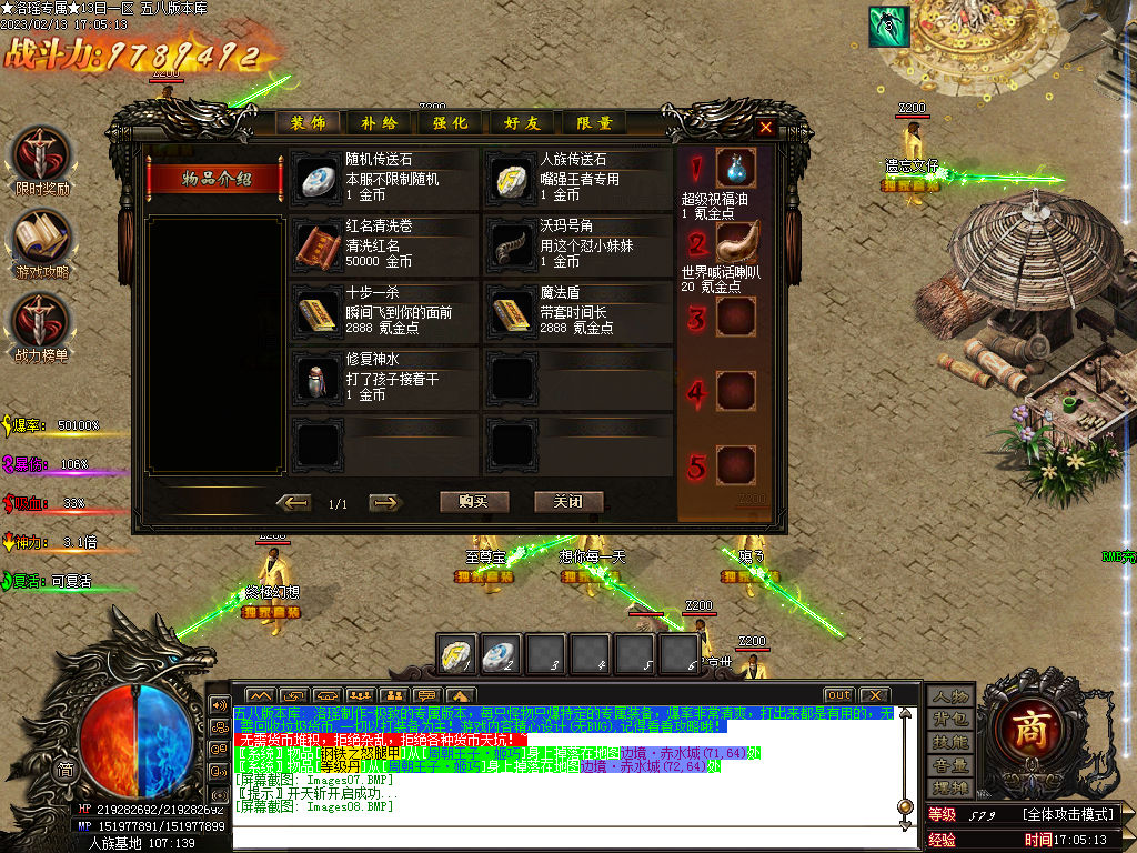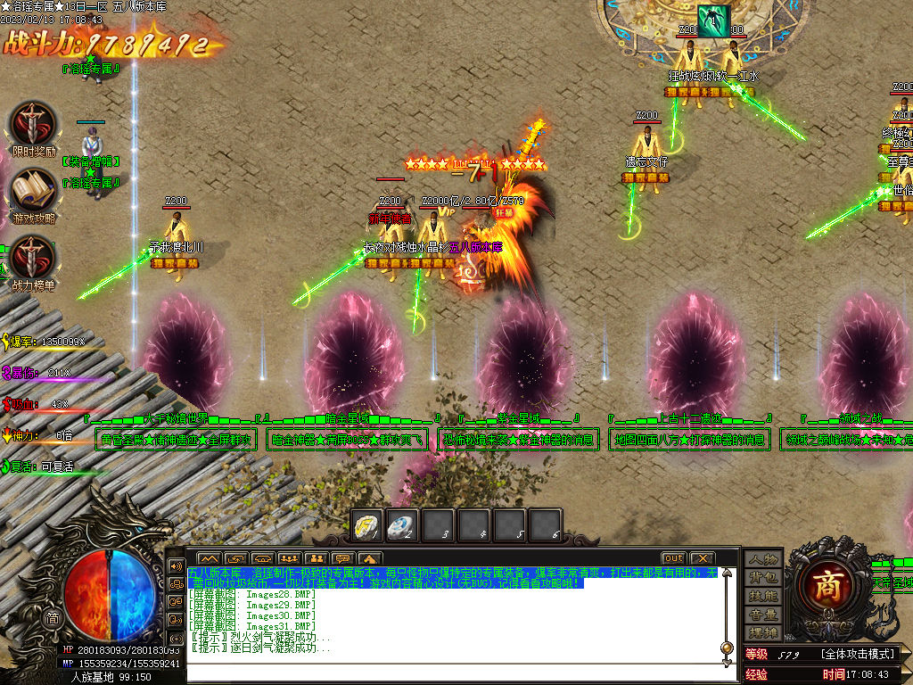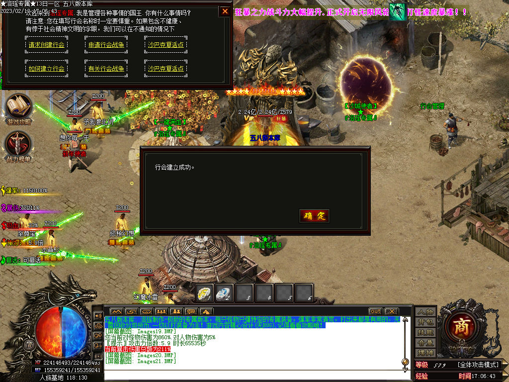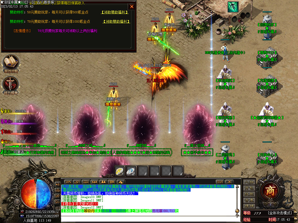 ★注意★:新区开放一小时 ,会刷出一只超级BOSS 黑龙天, ★必出一件T7-暗金级★的装备,新区必争, 得了装备可以快速超车!3小时刷新一只世界BOSS,必出紫晶一颗,和大量高级装备=